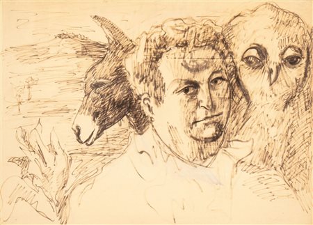 CARLO LEVI (Torino 1902-Roma 1975) <br>Autoritratto con gufo ed asino