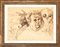 Bellissimo e grande disegno di Carlo Levi databile intorno agli anni '50 con autoritratto al centro. Il gufo alla destra è presente in molti disegni e quadri dell'epoca e rappresenta il pittore stesso, sia per la sua fisionomia ma anche per significati simbolici ed esoterici legati alla cultura ebraica. A Palazzo Altieri, dove il pittore viveva in quel periodo, Levi possedeva un gufo chiamato Graziadio. Nell'opera è raffigurato anche un asino, presenza evocativa della Lucania tra esilio e ritorni dopo la guerra.