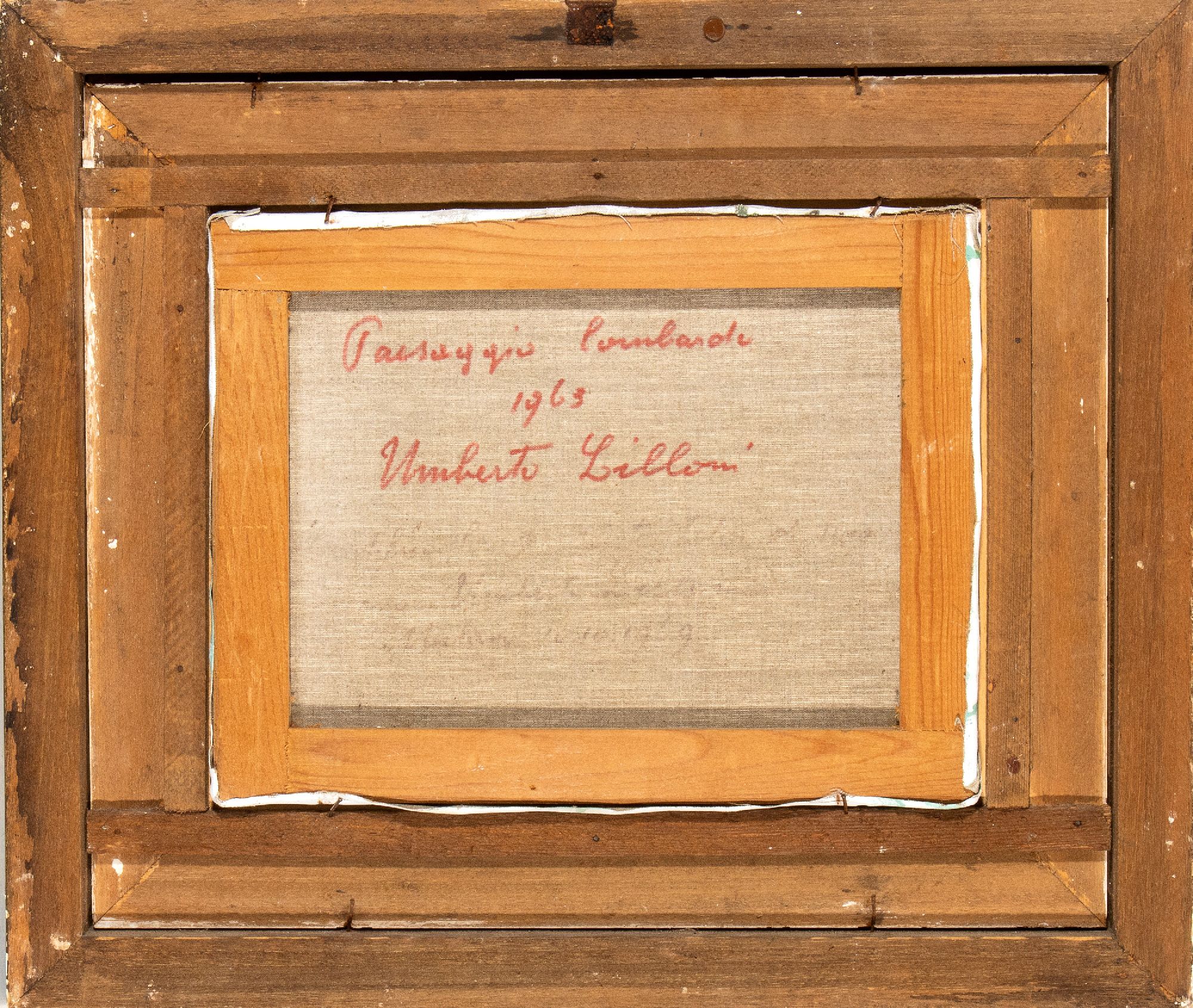 Firmato in basso a sinistra: Lilloni; firmato, datato e titolato al retro: Umberto Lilloni, 1963, Paesaggio lombardo