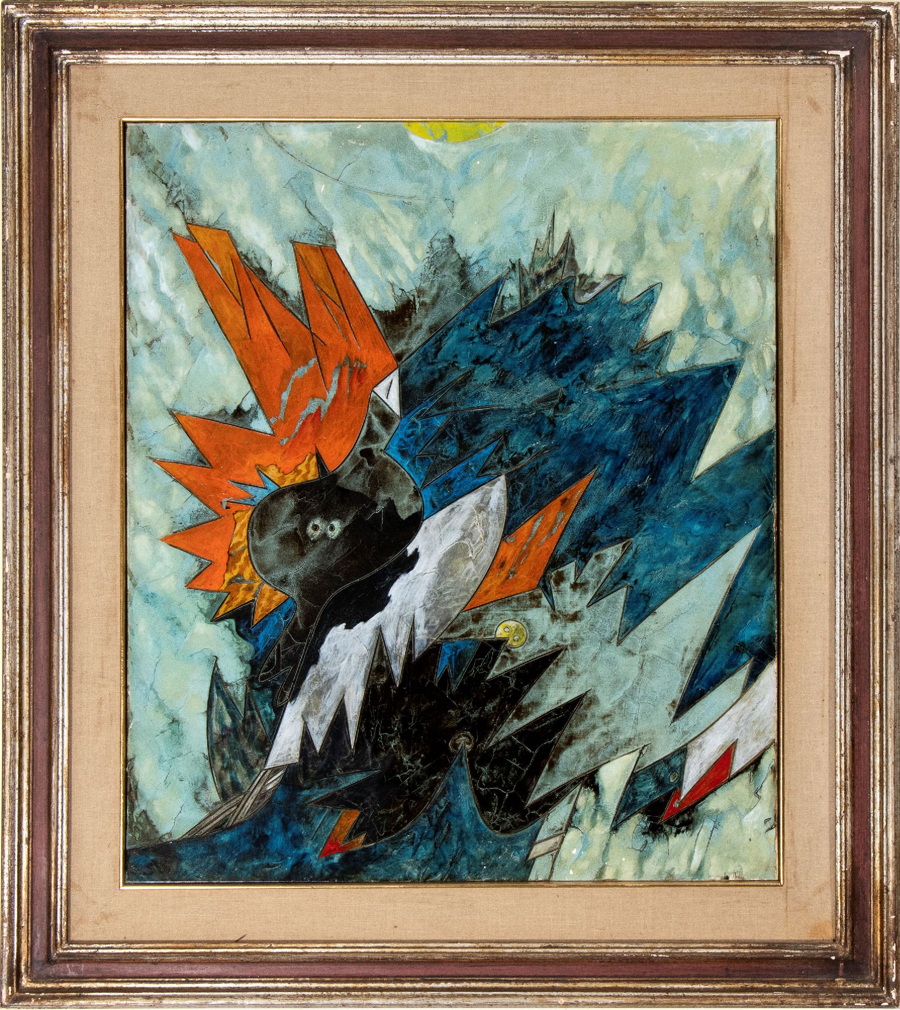 Buone condizioni, cornice senza vetro; leggero craquelure e piccole cadute di colore nel bordo inferiore e superiore