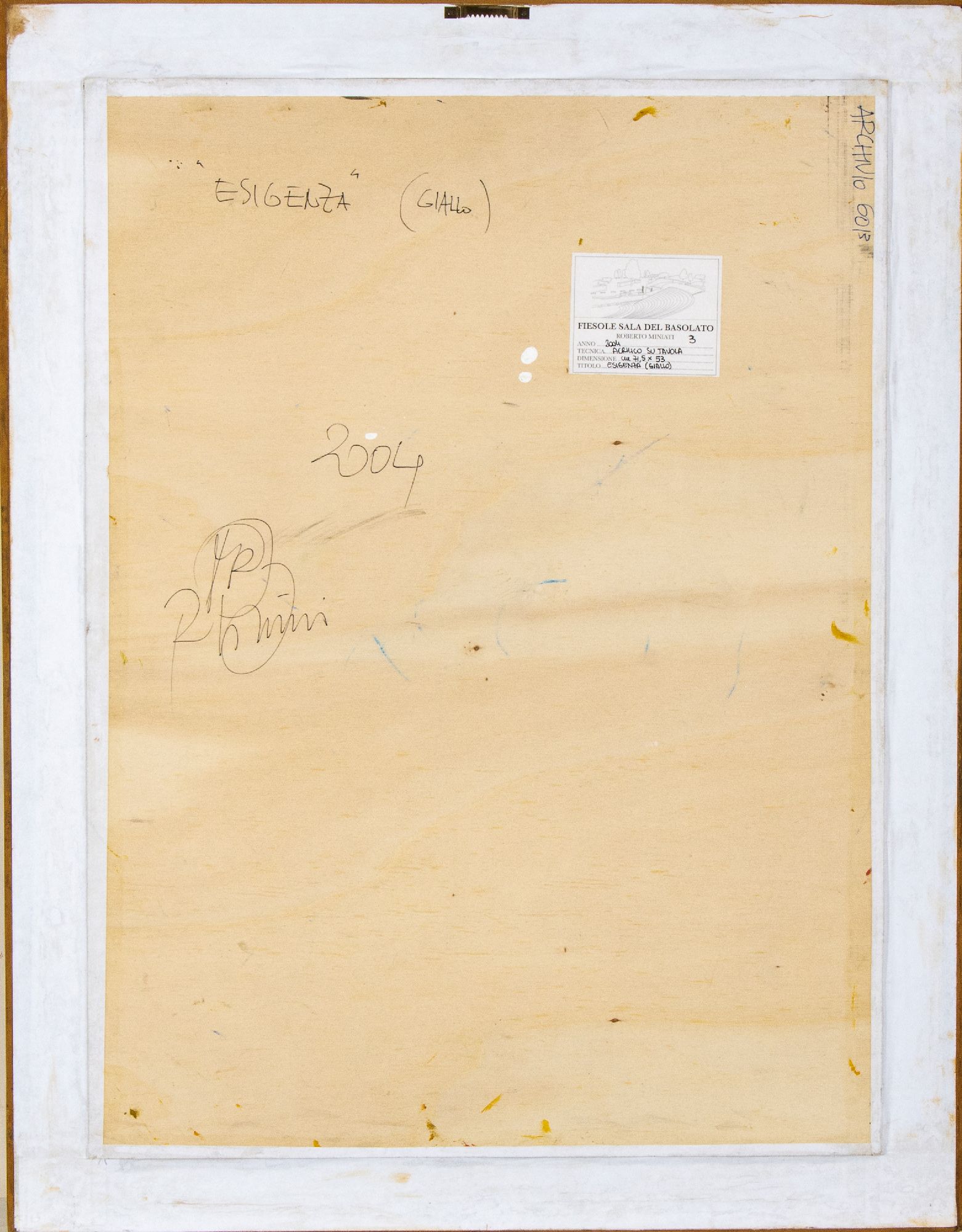 Firmato, datato e titolato al retro: R. Miniati, Esigenza (giallo), 2004