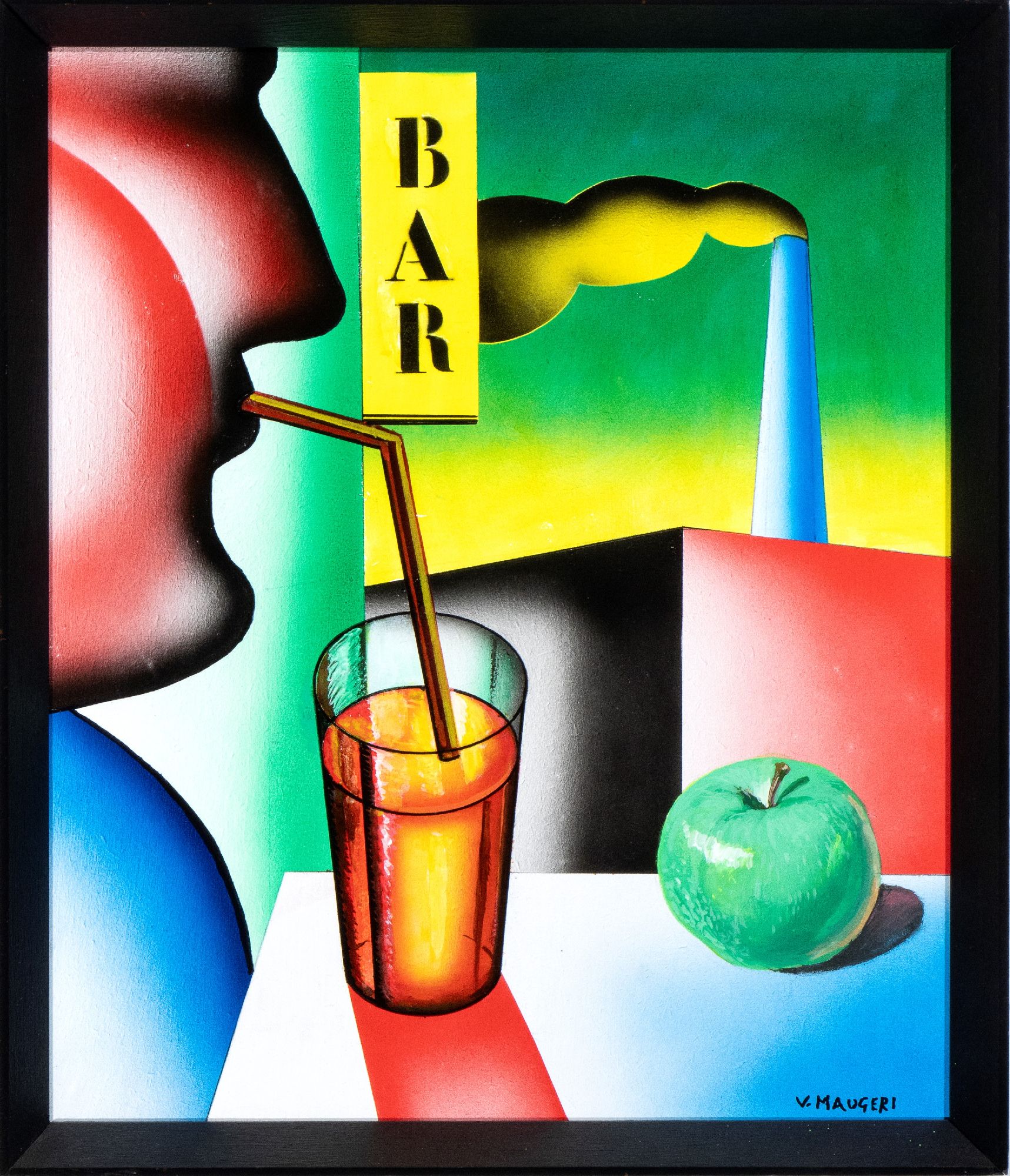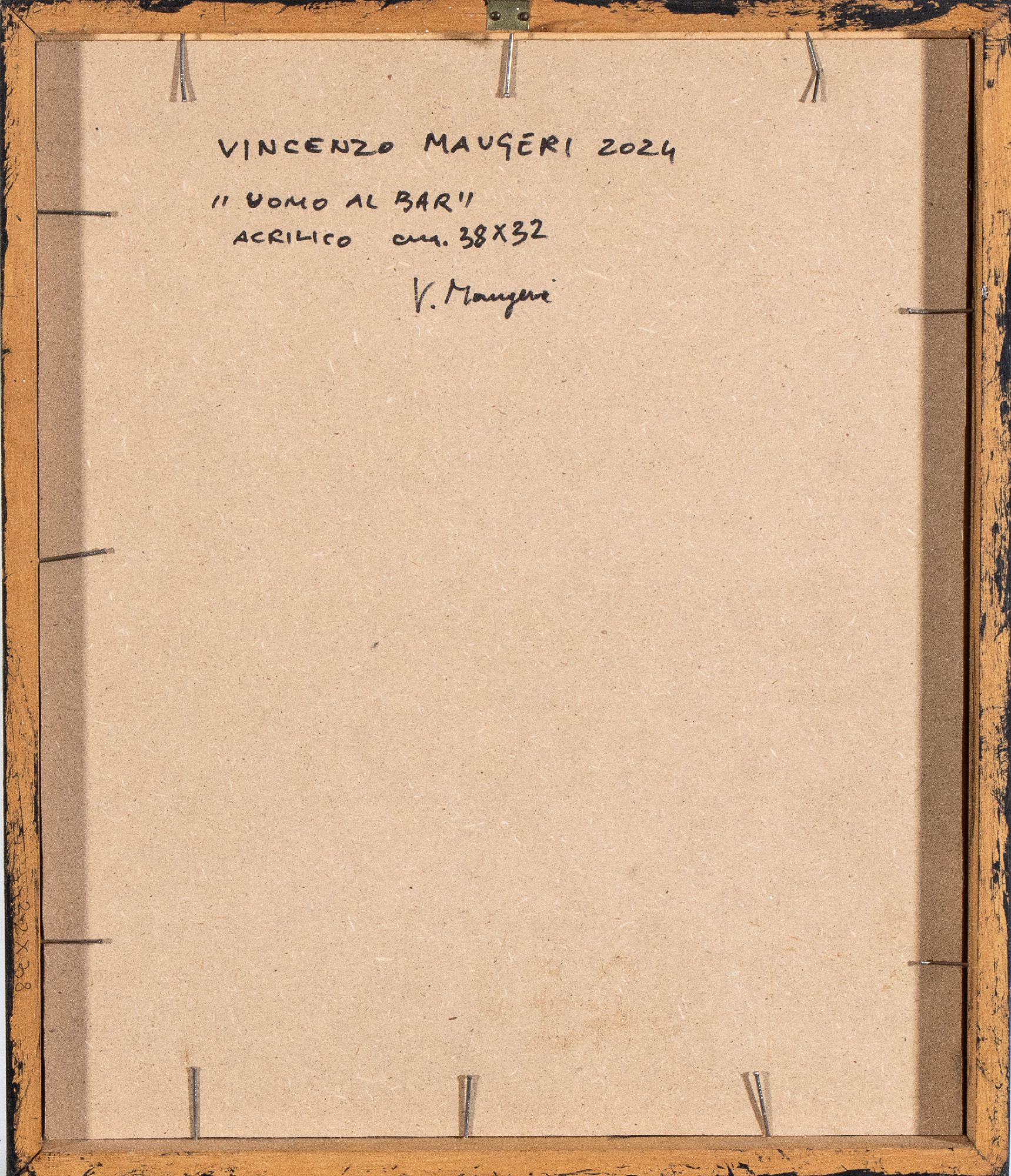 Firmato in basso a destra: V. Maugeri; firmato, datato e titolato al retro: V. Maugeri, 2024, Uomo al bar