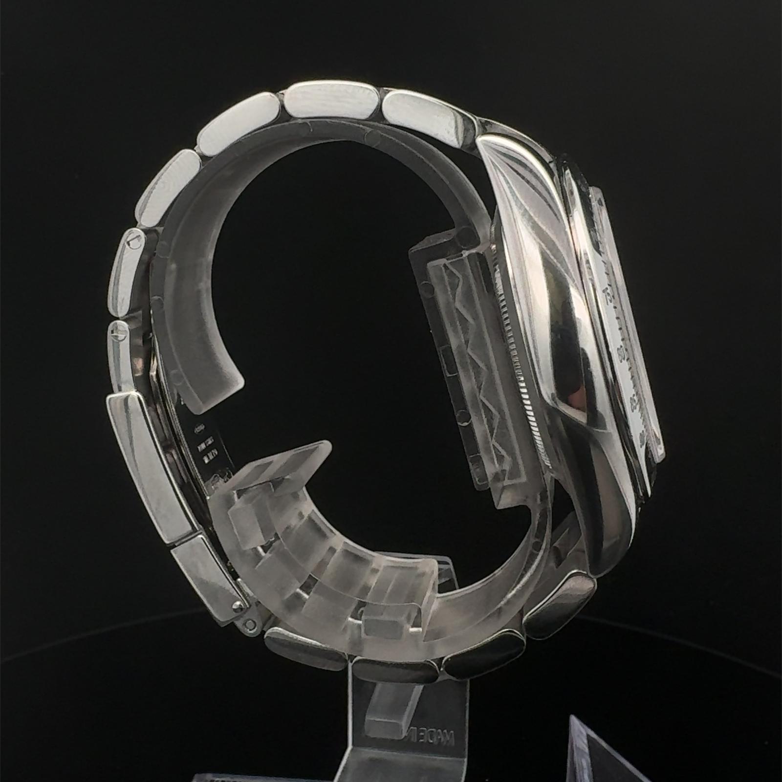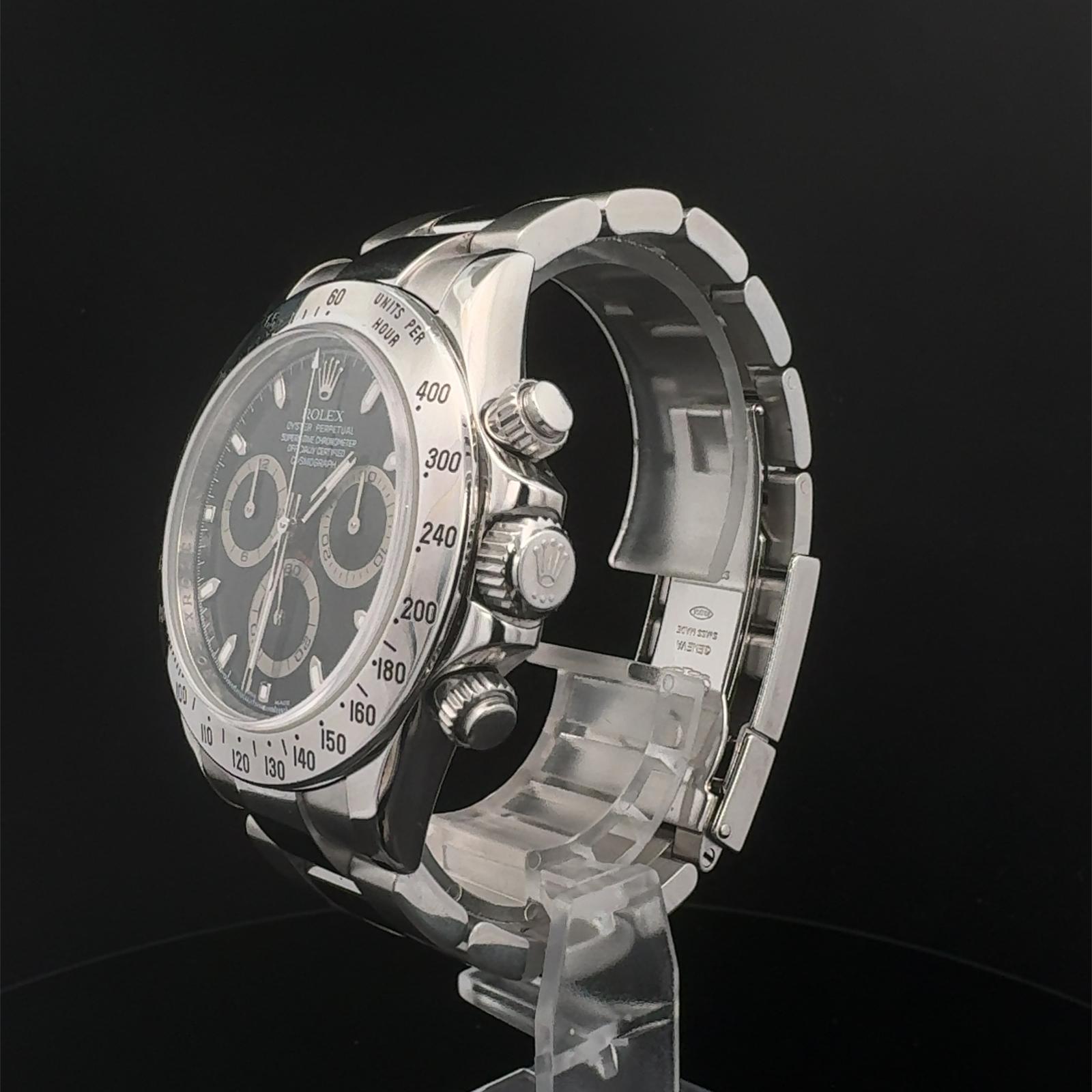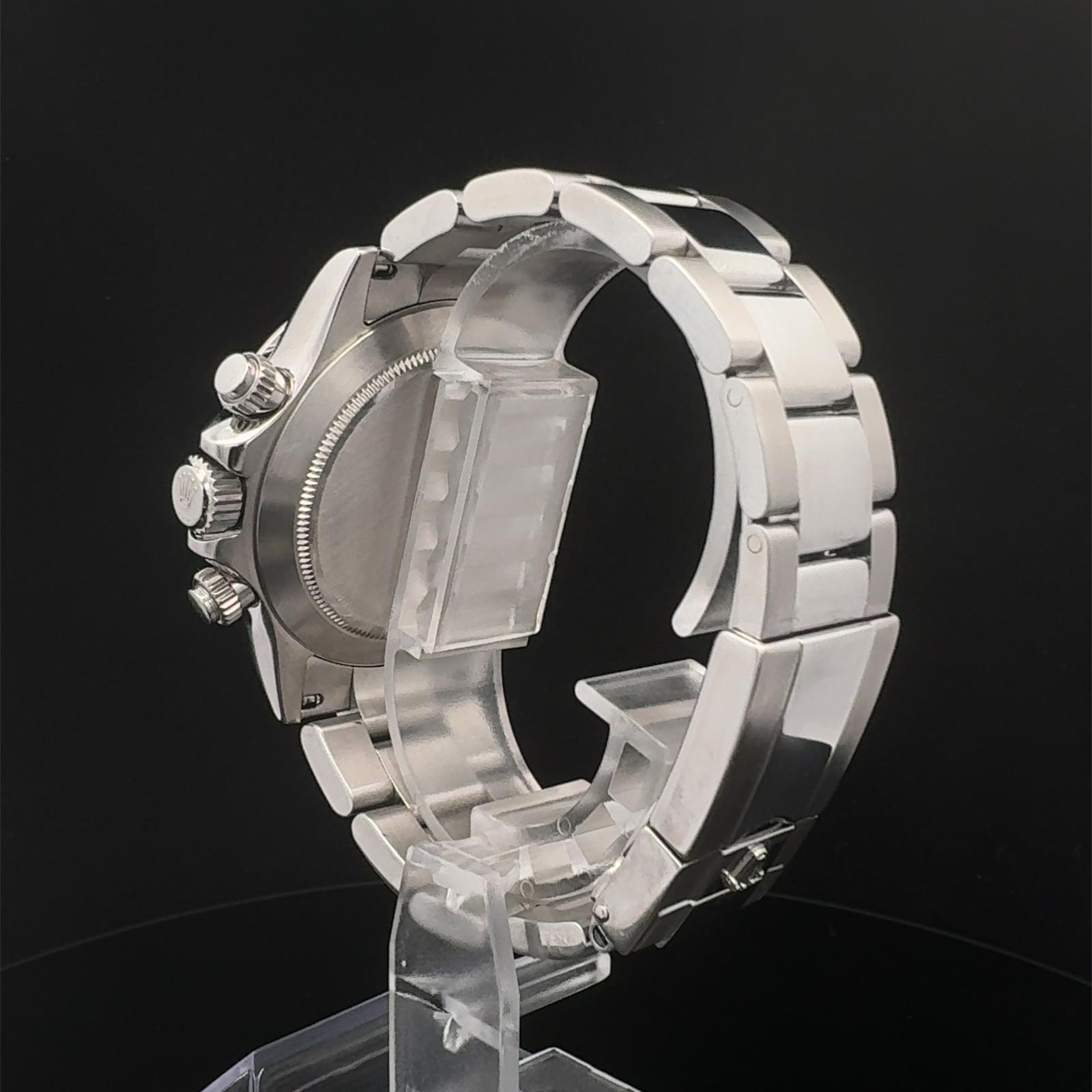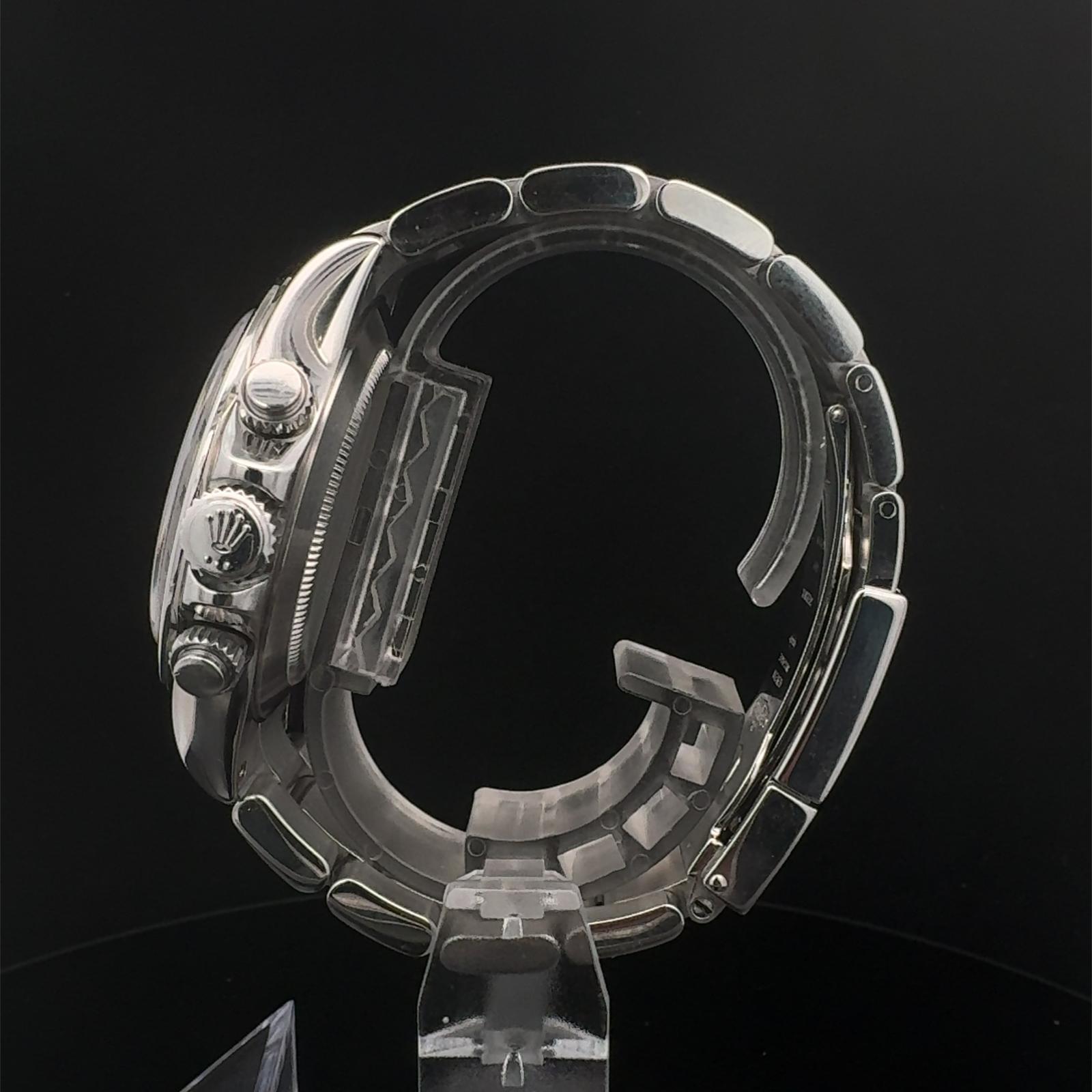 Marca Rolex Modello (Orologio) Daytona Numero di referenza 116520 Carica Automatico Materiale della cassa Acciaio Materiale cinturino Acciaio Anno di produzione 2008 Corredo documenti originali, no box Carica Automatico Cassa Materiale della cassa Acciaio Diametro 40 mm Impermeabile 10 ATM Materiale lunetta Acciaio Vetro Vetro zaffiro Quadrante Nero Numeri sul quadrante Senza numeri Cinturino Materiale cinturino Acciaio Colore cinturino Acciaio Chiusura Déployante Materiale chiusura Acciaio Funzioni Cronografo