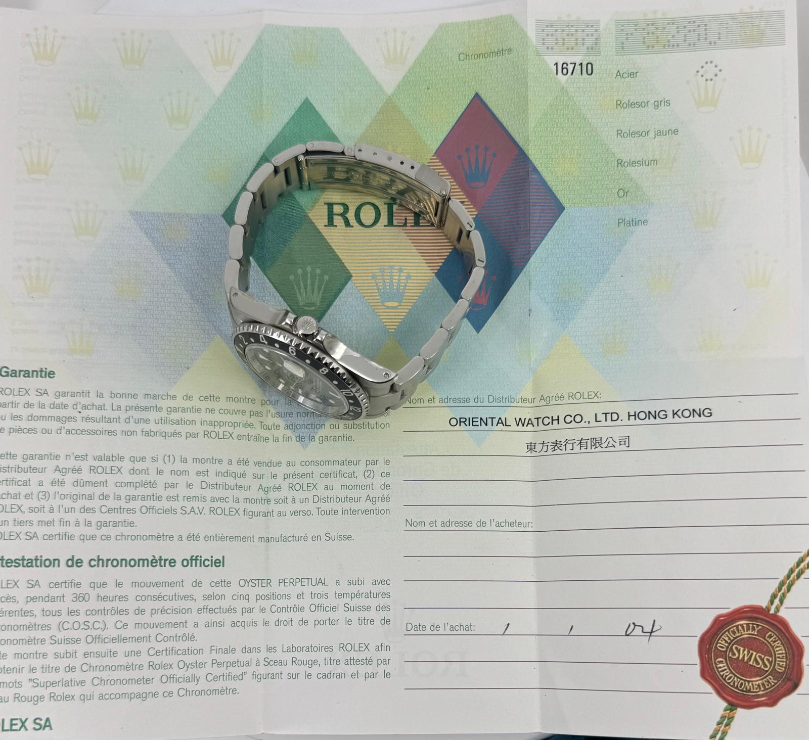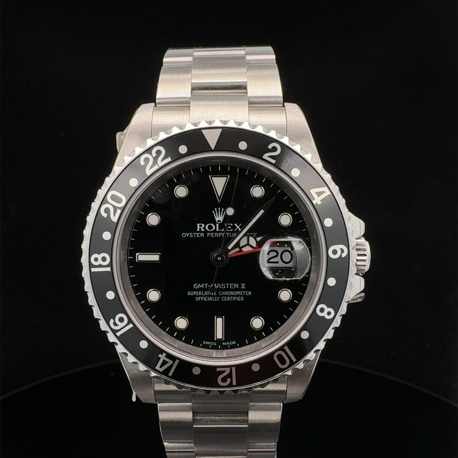 Marca Rolex Modello (Orologio) GMT-Master II Numero di referenza 16710 NOS Carica Automatico Materiale della cassa Acciaio Materiale cinturino Acciaio Anno di produzione 2004 Corredo documenti originali, no box Carica Automatico Cassa Materiale della cassa Acciaio Diametro 40 mm Impermeabile 10 ATM Materiale lunetta Acciaio Vetro zaffiro Quadrante Nero Numeri sul quadrante Senza numeri Cinturino Materiale cinturino Acciaio Colore cinturino Acciaio Chiusura Déployante Materiale chiusura Acciaio Funzioni Data, GMT , OROLOGIO CON DOPPIA LUNETTA, UNA NERA E UNA COKE