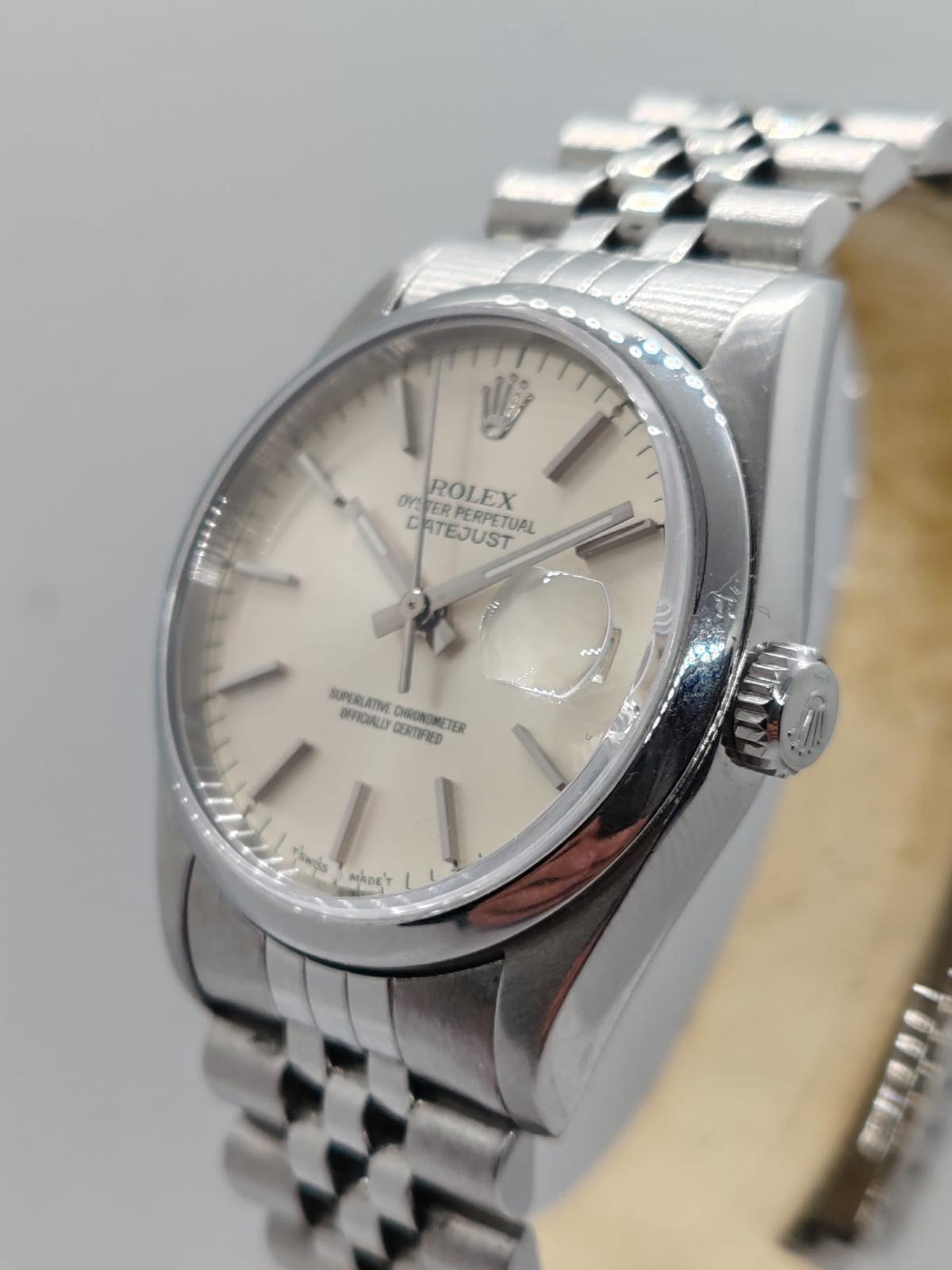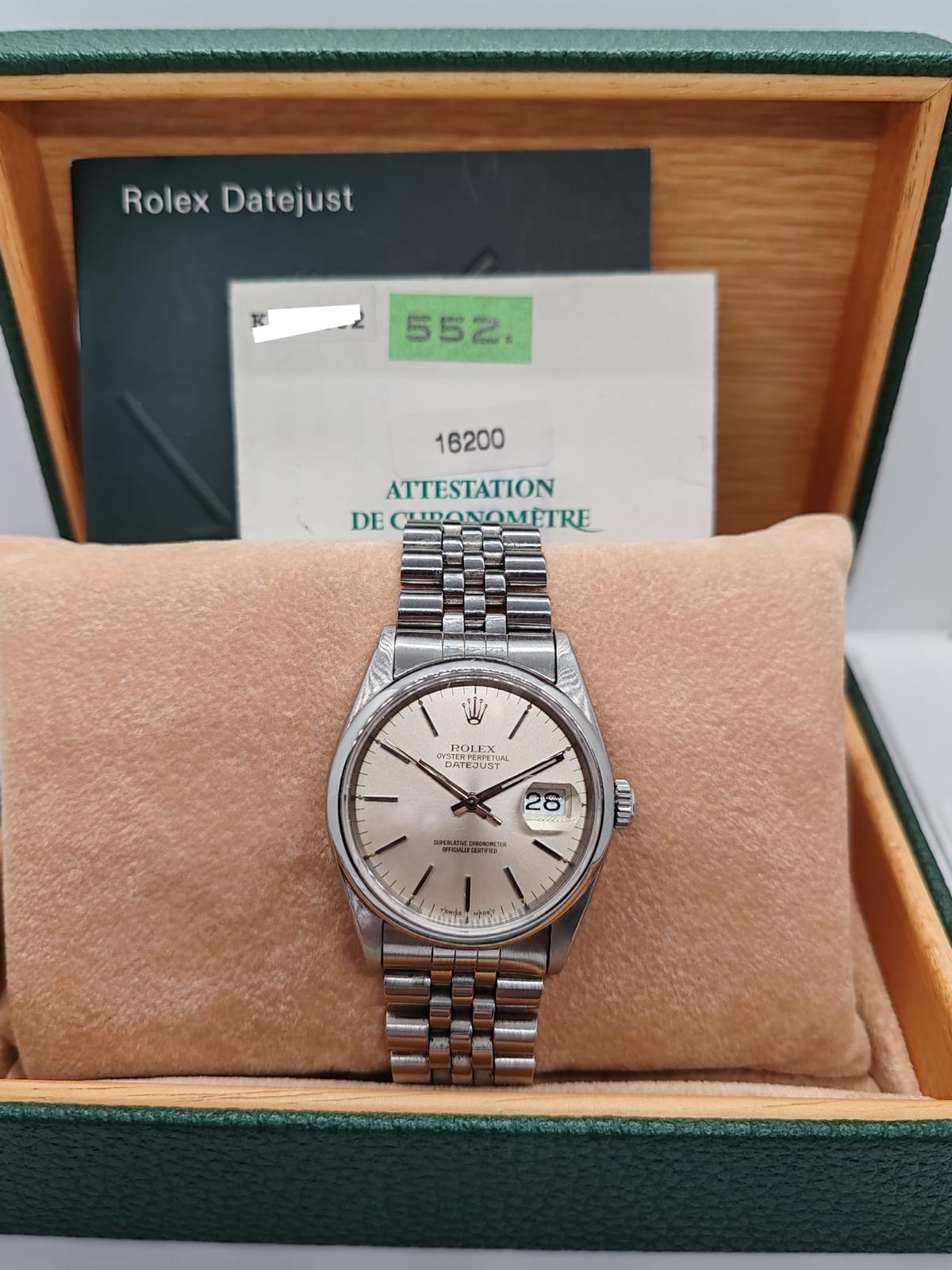 Marca Rolex Modello (Orologio) Datejust 36 Numero di referenza 16200 Carica Automatico Materiale della cassa Acciaio Materiale cinturino Acciaio Anno di produzione 2002 Condizione Ottimo (di seconda mano, segni di usura assenti o appena visibili) Corredo documenti originali, NO BOX Calibro Carica Automatico Cassa Materiale della cassa Acciaio Diametro 36 mm Impermeabile 10 ATM Materiale lunetta Acciaio Vetro Vetro zaffiro Cinturino Materiale cinturino Acciaio Colore cinturino Acciaio Chiusura Déployante Materiale chiusura Acciaio