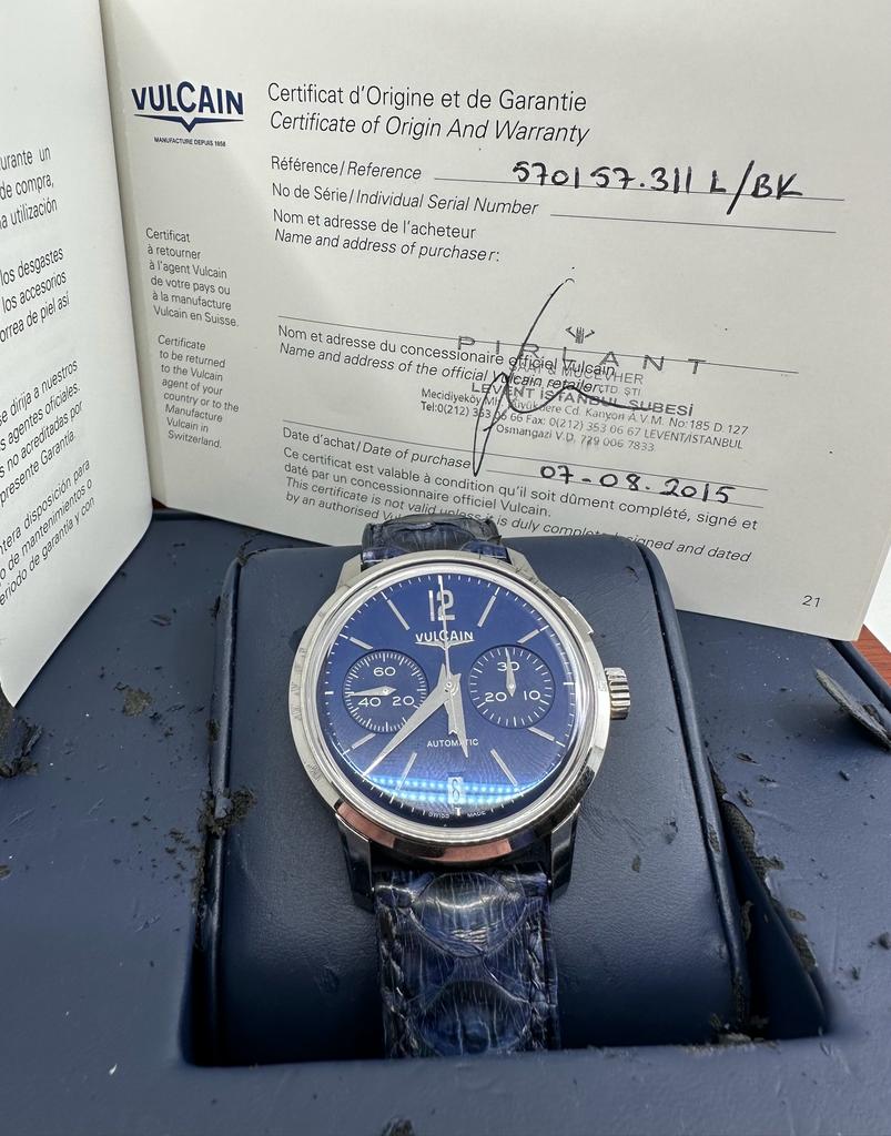 Marca Vulcain Modello (Orologio) Carica Automatico Materiale della cassa Acciaio Materiale cinturino Pelle Condizione Ottimo (di seconda mano, segni di usura assenti o appena visibili) Corredo Con scatola originale e documenti originali Materiale della cassa Acciaio Diametro 42 mm Impermeabile 6 ATM Materiale lunetta Acciaio Vetro zaffiro Materiale cinturino Pelle Colore Marrone Chiusura Doppia chiusura déployante Materiale chiusura Acciaio Altro Secondi centrali, Piccoli secondi