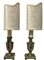 Coppia di piccoli lumi in bronzo dorato a forma di anfore, con ventole, 19° secolo H cm 40
