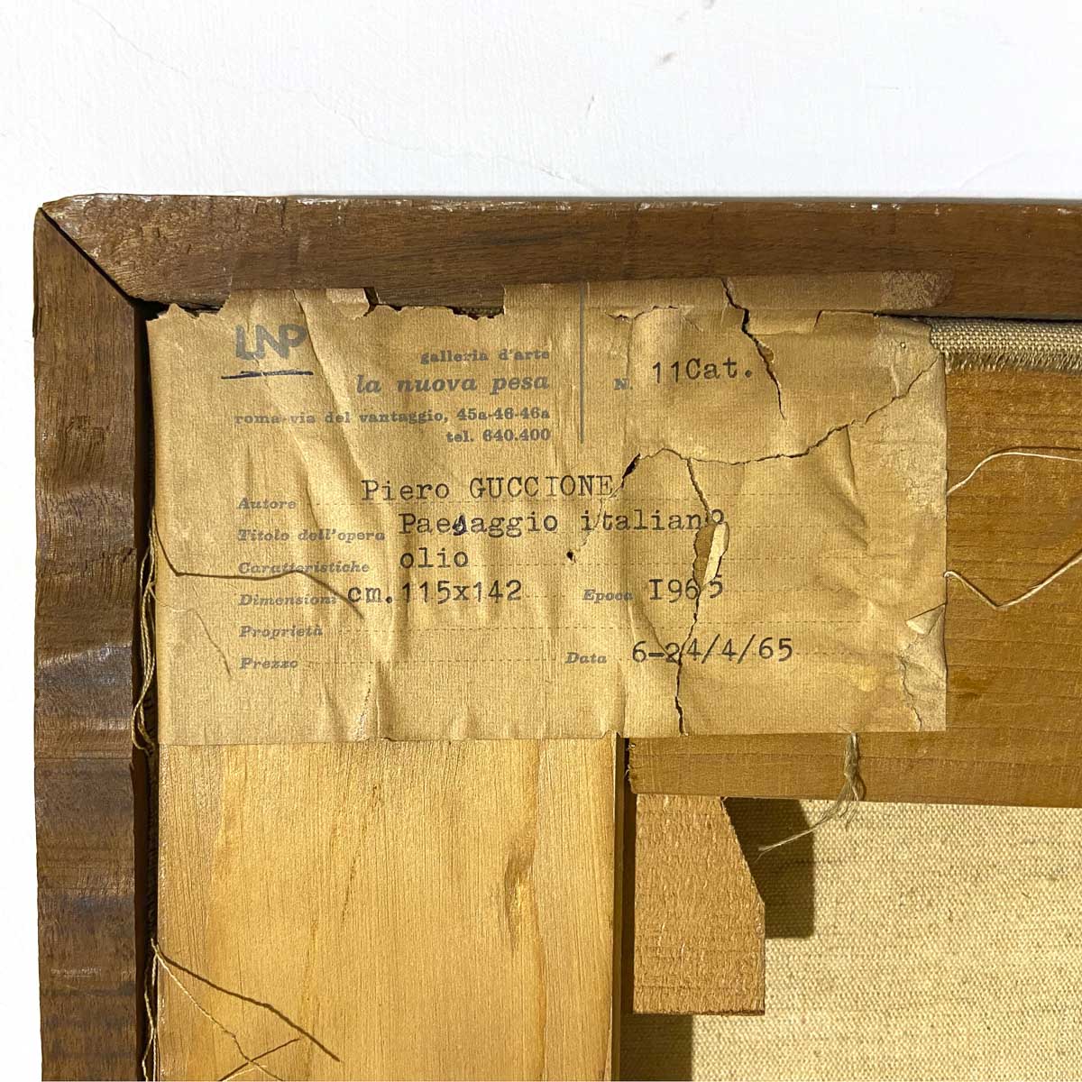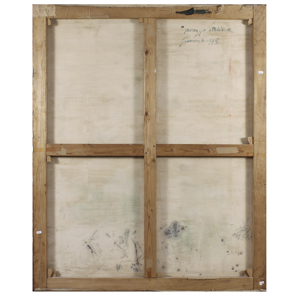 "Paesaggio italiano", 1965, olio su tela, firmato e datato sul retro, etichetta della Galleria La Nuova Pesa (aprile 1965) al retro, entro cornice