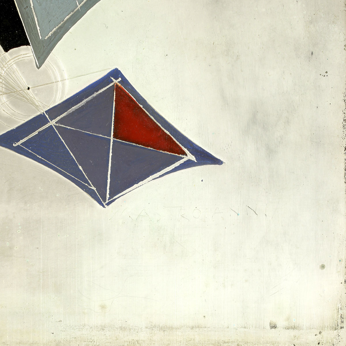 "Composizione", tecnica mista su lastra di metallo, firmata in basso a destra, entro cornice