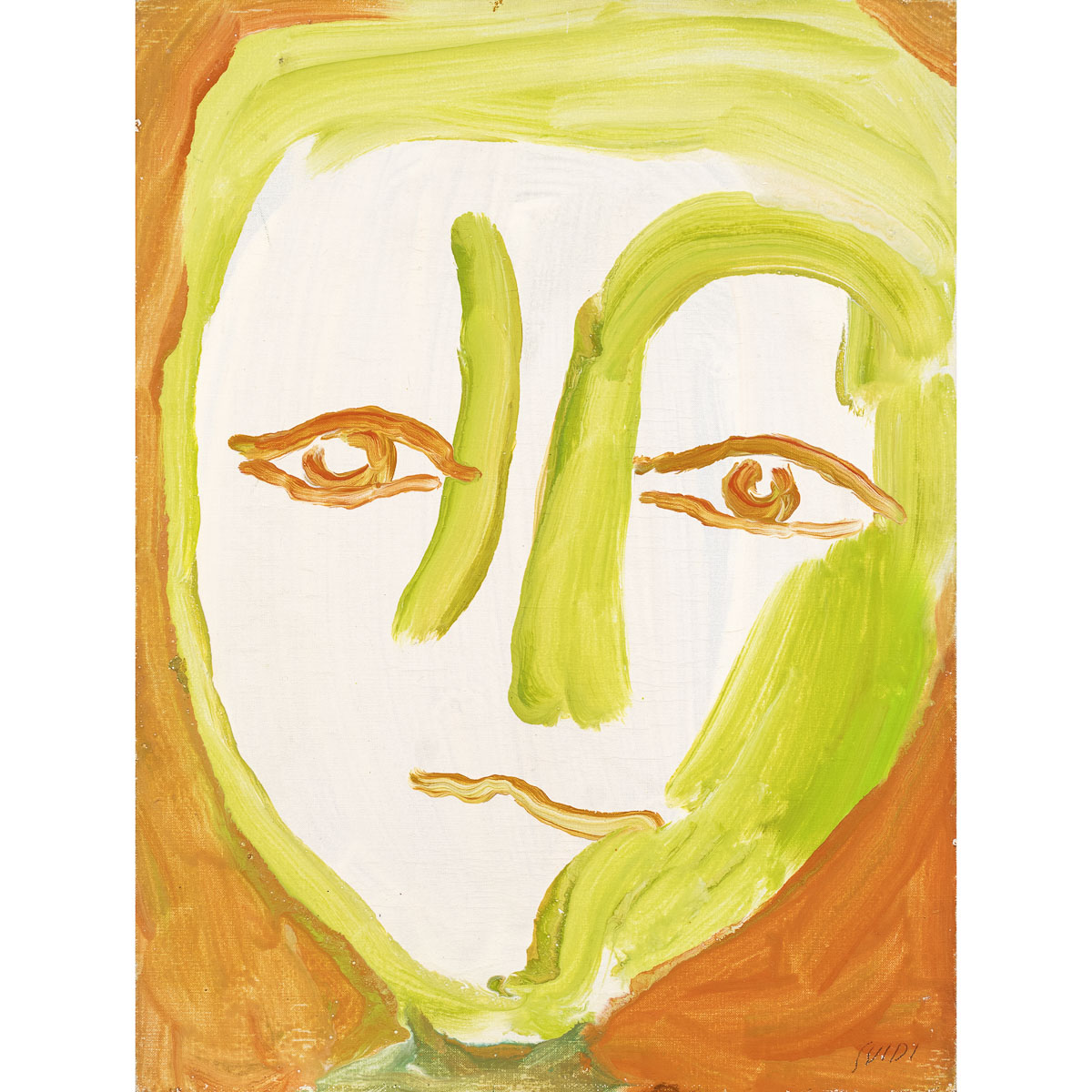 "Grande testa", olio su tela, firmato in basso a destra e per autentica sul retro, entro cornice