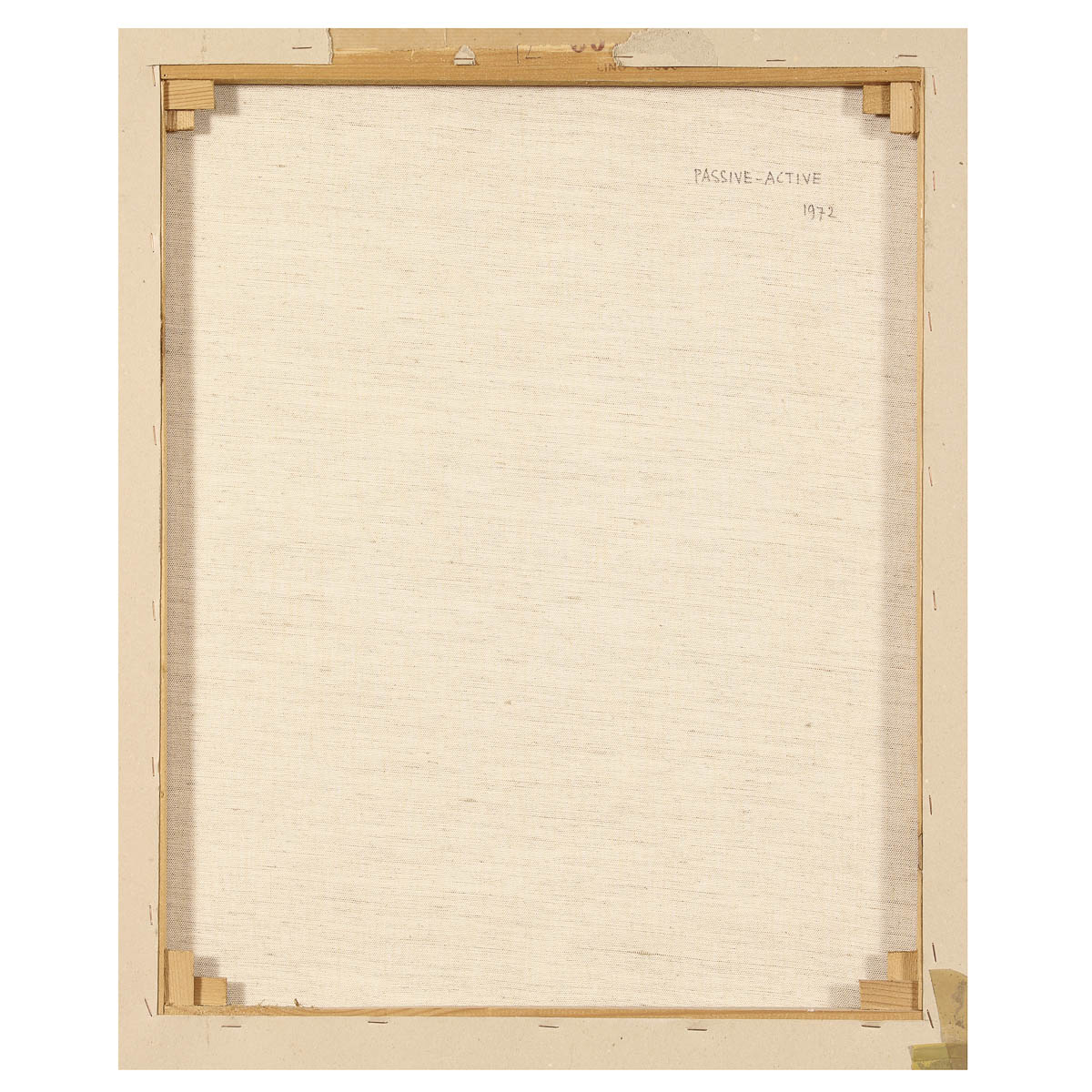 "Passive- Active", 1972, olio su tela, firmato e datato in basso a destra, titolato e datato sul retro, entro cornice