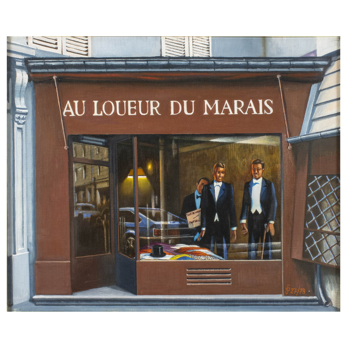 "Au loueur du Marais", 1978, olio su tela, siglato in basso a destra, firmato, datato e titolato sul retro