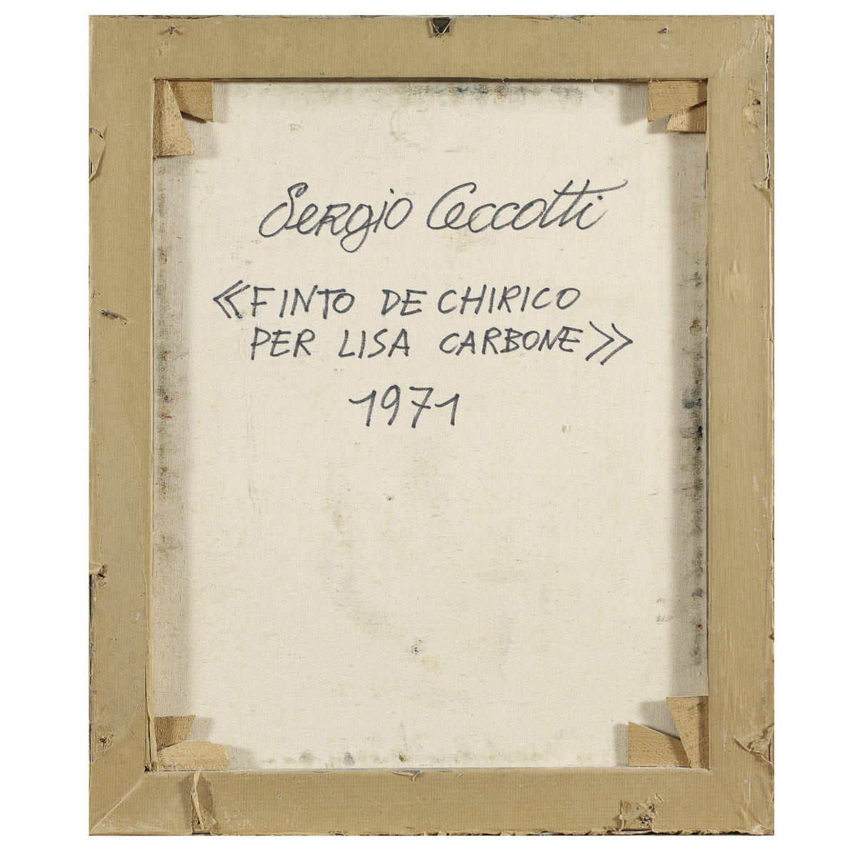 "Finto De Chirico per Lisa Carbone", 1971, olio su tela, siglato e datato in alto a destra, firmato, datato e titolato sul retro, entro cornice