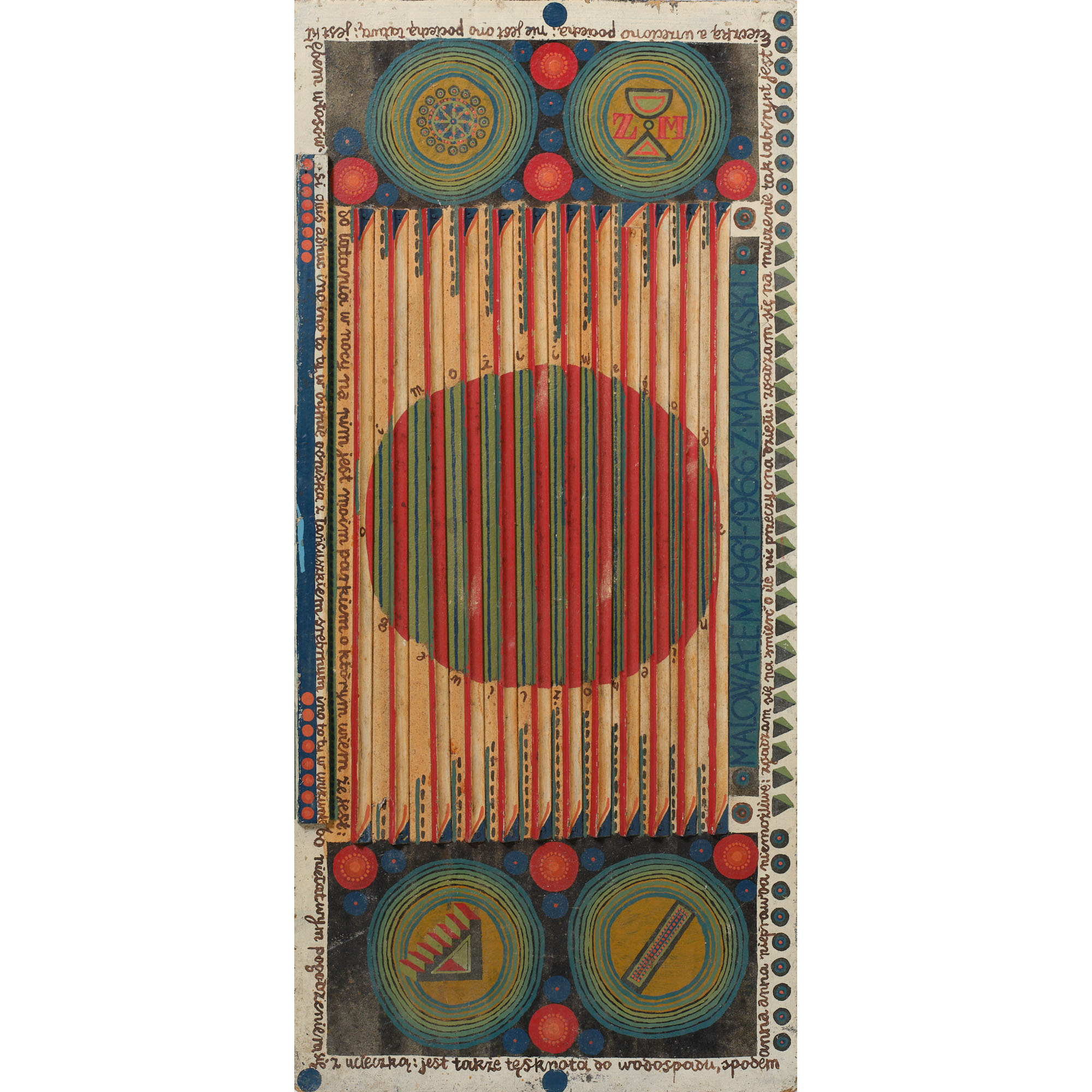 Tecnica mista e applicazioni in legno su tavola, cm. 78 x 36,5 x 1