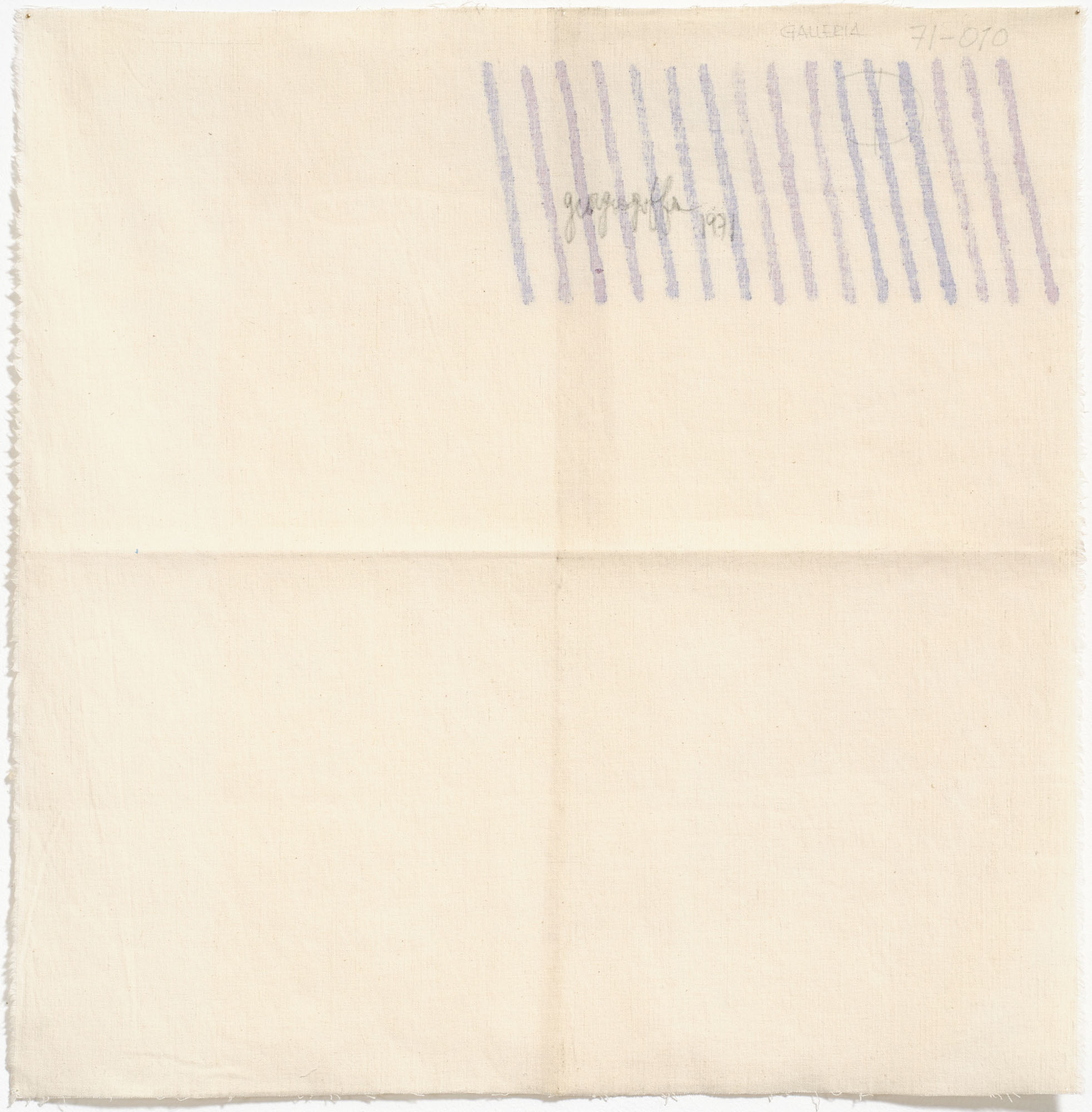 Certificato di archiviazione a cura dell'Archivio Griffa n. 71-010, con etichetta e timbro Galleria Fumagalli, Bergamo
