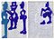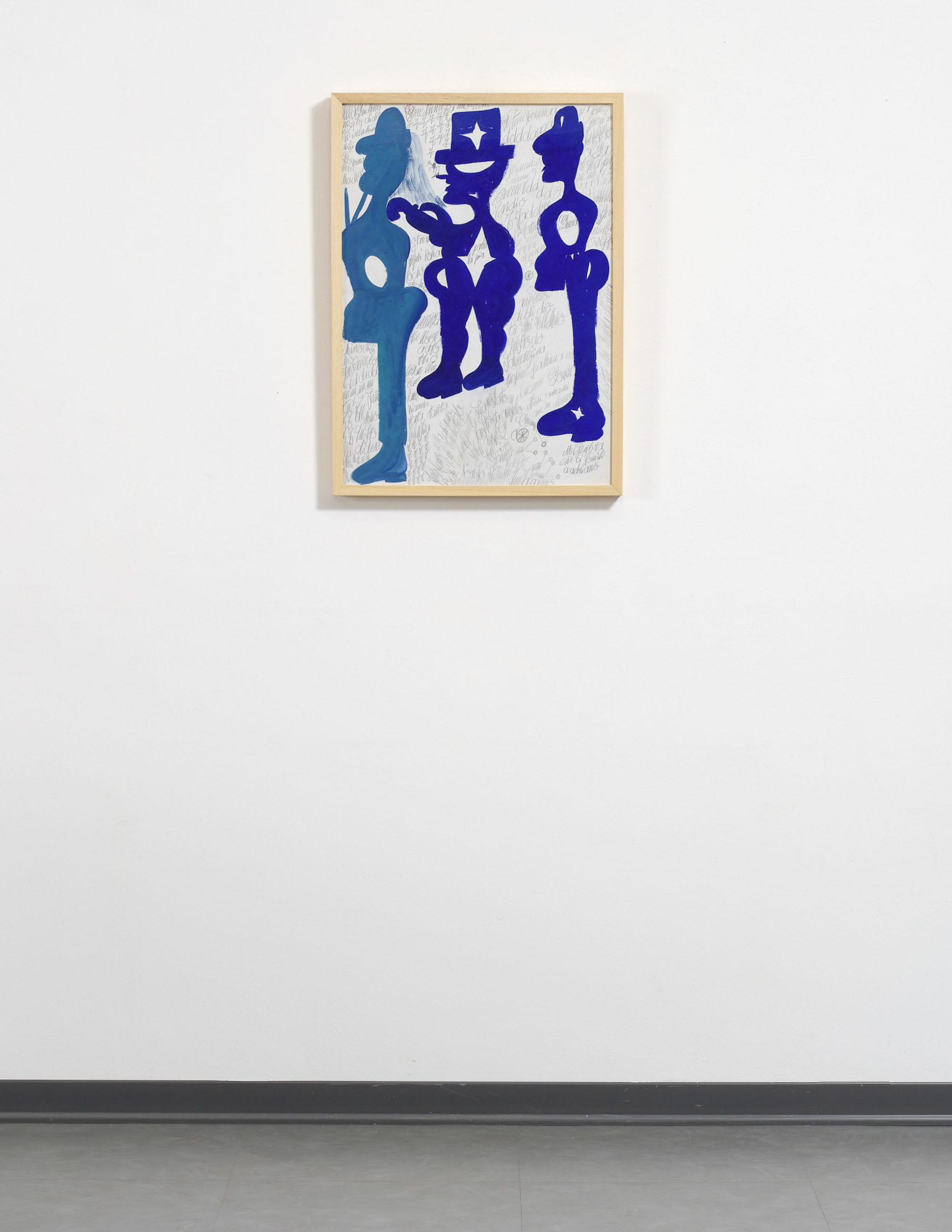 Figura stellata con cilindro blu e due figure zoppe - Alpino blu con lunga treccia, 1967