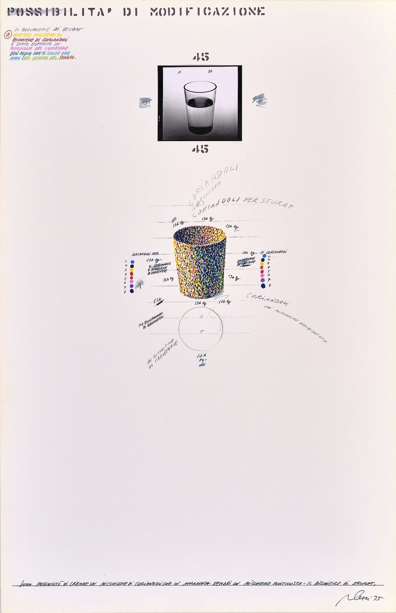 FABRIZIO PLESSI Sulla possibilità di creare un bicchiere di coriandoli che in apparenza sembri un bicchiere puntinista - Il bicchiere di Seurat, 1975