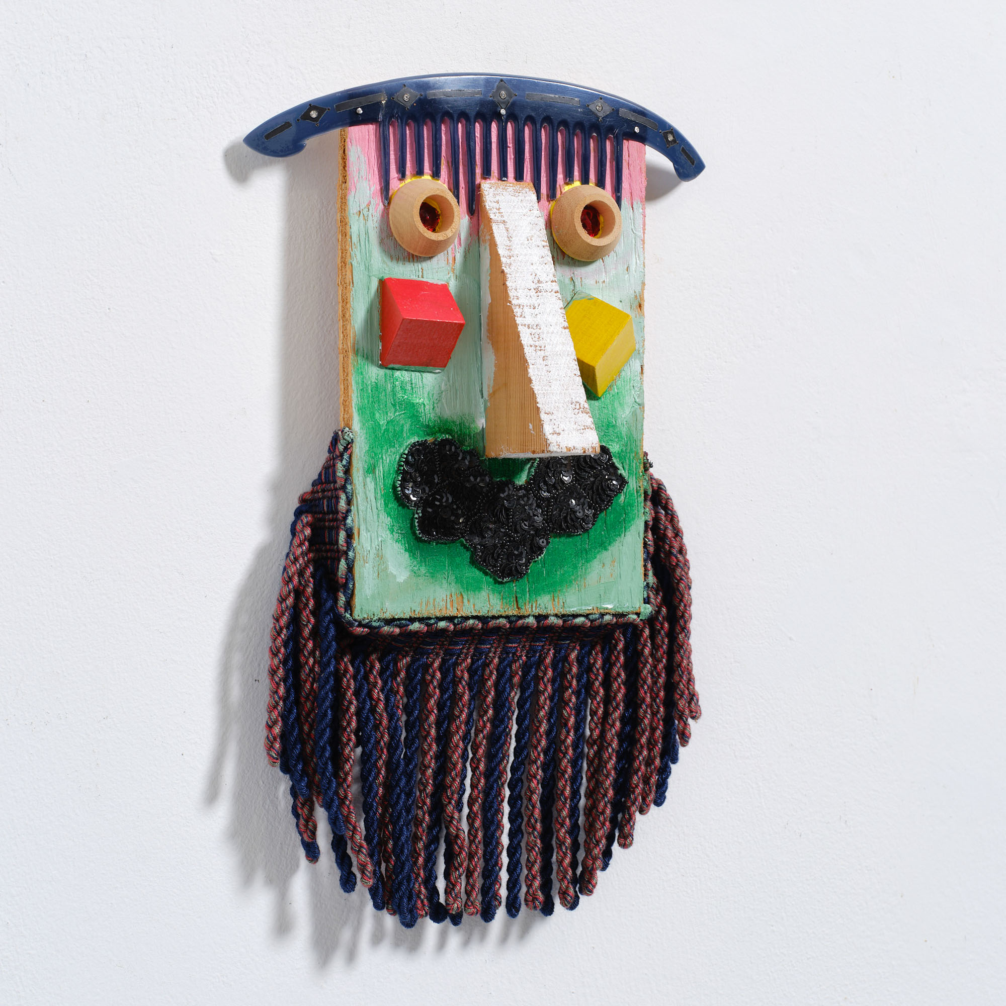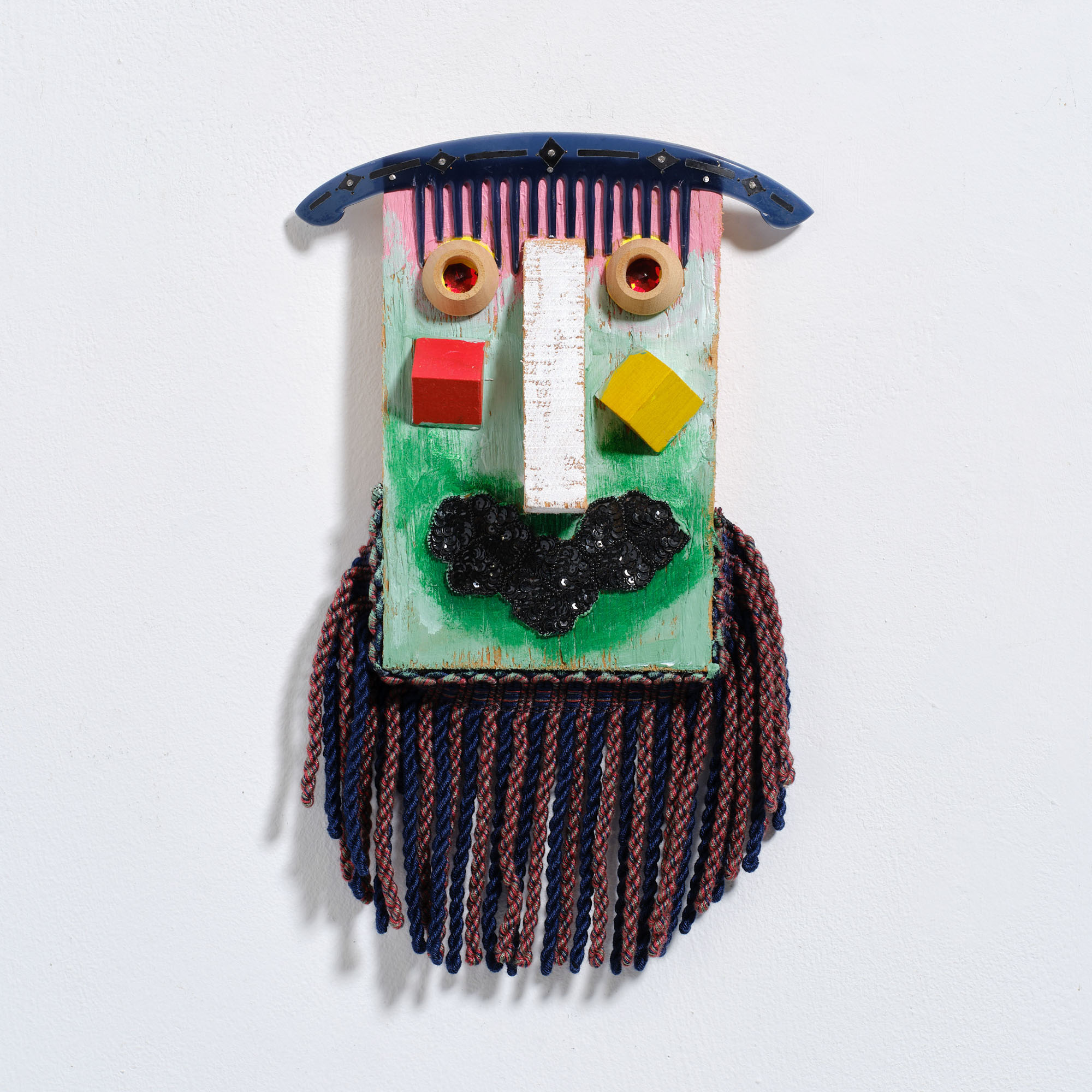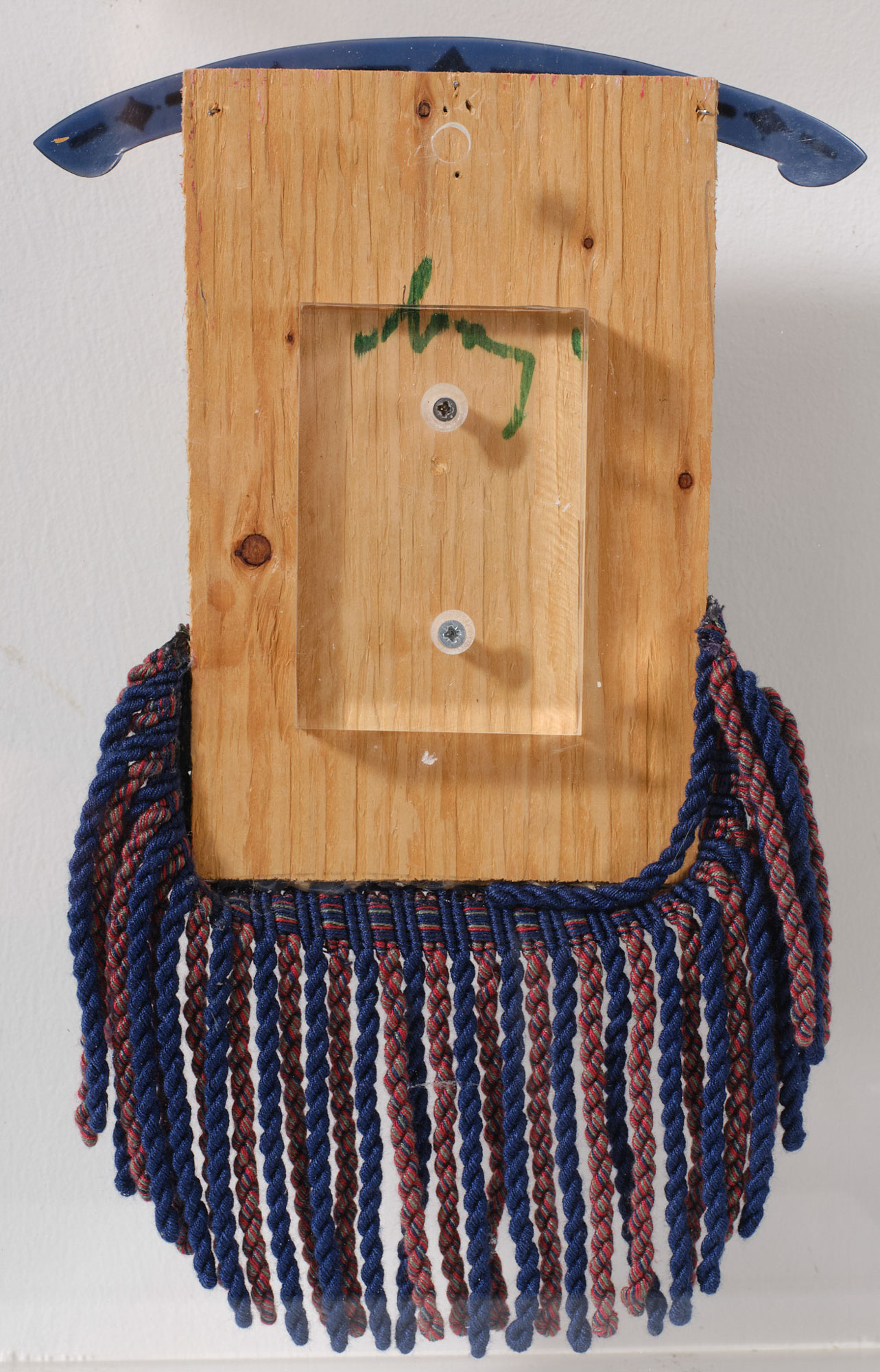 Legni acrilici, collage (corda, plastica, paillettes), cm. 37 x 22 x 8