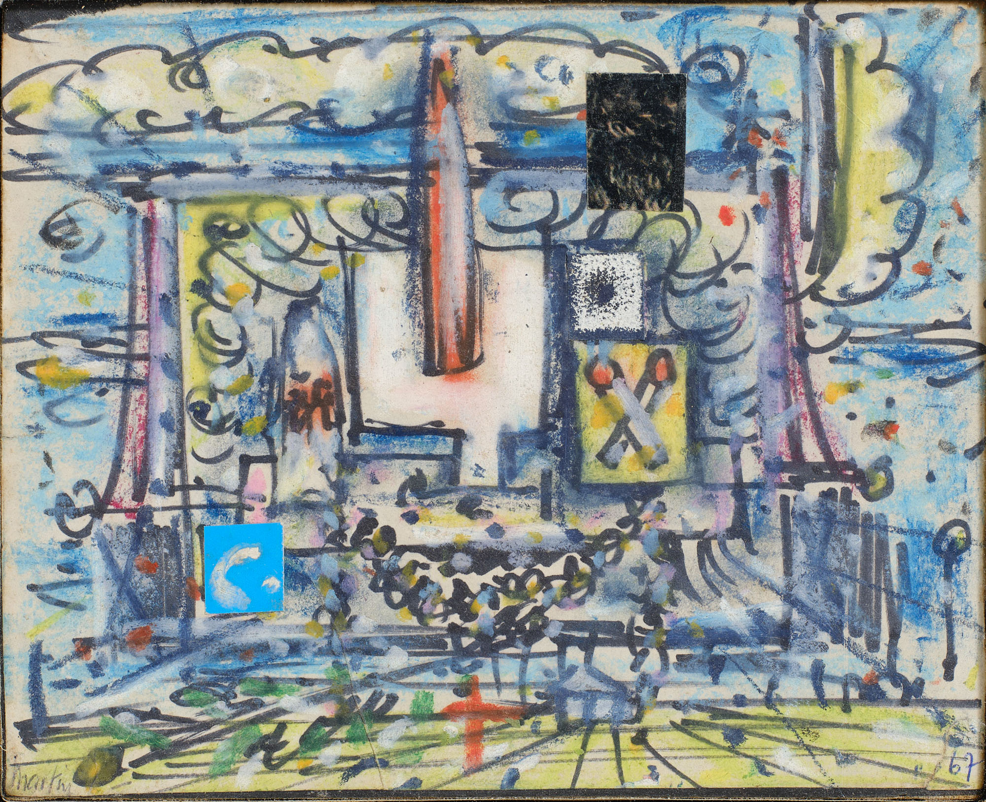 Tecnica mista e collage su carta intelata, cm. 15,5 x 19
