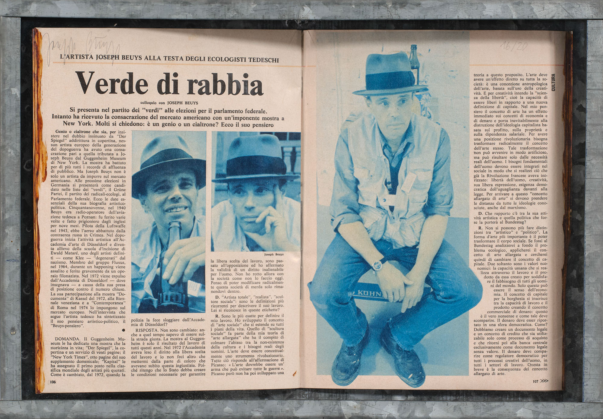 Multiplo, giornale "l'Espresso" entro box in zinco, cm. 32 x 46