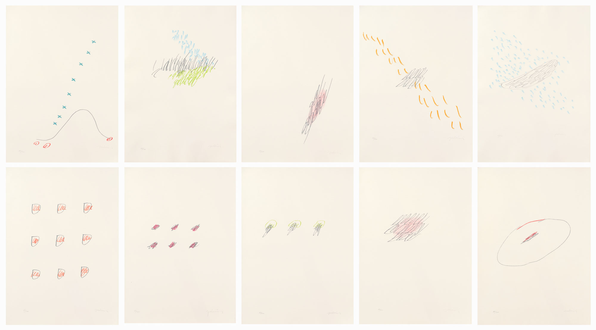 Multiplo, cofanetto contenente 10 litografie a colori + testo, cm. 70 x 50 cad.