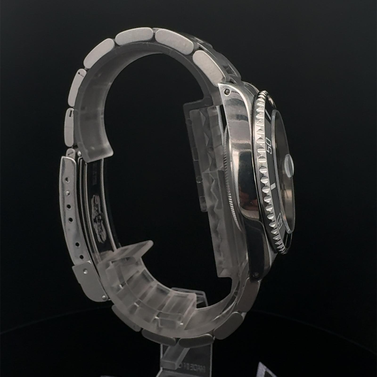 Marca Rolex Modello (Orologio) Submariner Date Numero di referenza 16610 Carica Automatico Materiale della cassa Acciaio Materiale cinturino Acciaio Anni 90 Condizione Ottimo (di seconda mano, segni di usura assenti o appena visibili) Corredo documenti originali, no box Cassa Materiale della cassa Acciaio Diametro 40 mm Impermeabile 30 ATM Materiale lunetta Acciaio Vetro Vetro zaffiro Quadrante Nero Numeri sul quadrante Senza numeri Cinturino Materiale cinturino Acciaio Colore cinturino Acciaio Chiusura Déployante Materiale chiusura Acciaio