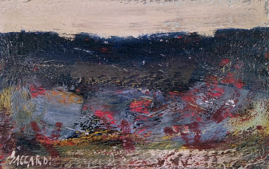SACCARDI CARLO Monte Bello della Battaglia (Pv) 1921 Paesaggio astratto Olio...