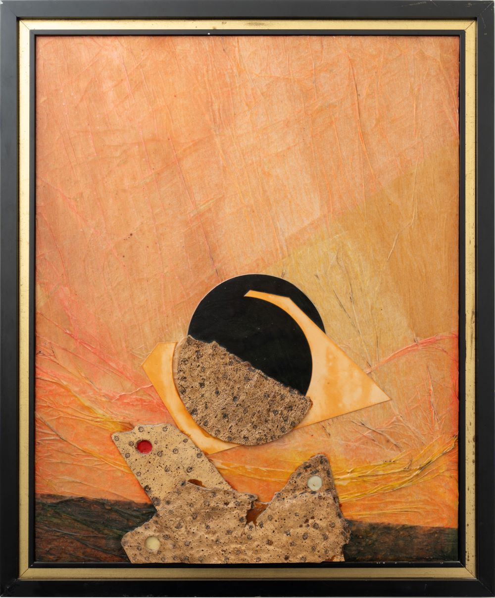 Roberto Crippa (Monza 1921 - Bresso 1972), Senza titolo. Cm. 91x75. Collage e sughero su tavola. Opera firmata al retro R. Crippa.