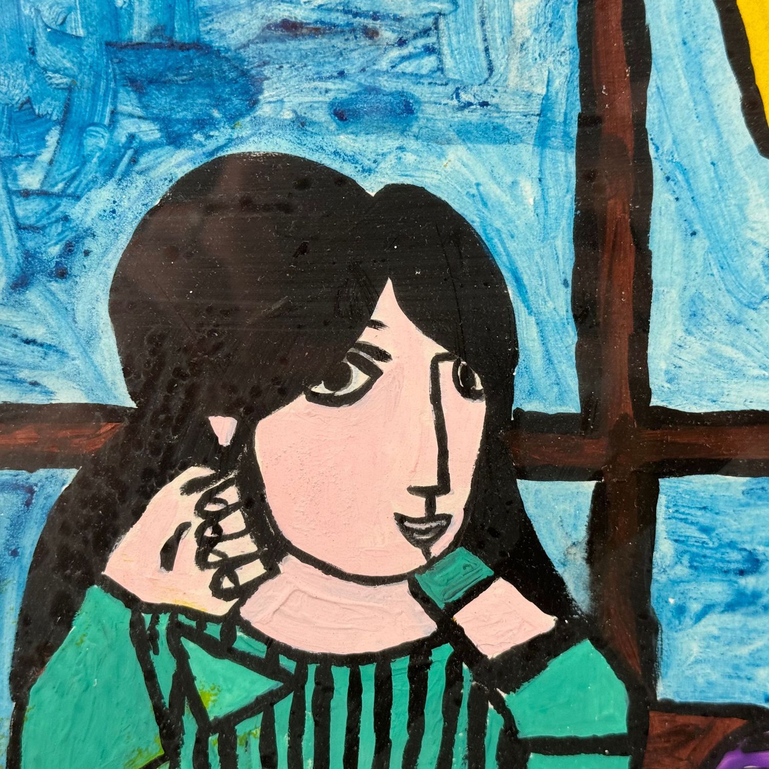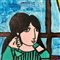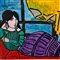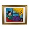 Dipinto acrilico su carta, periodo XX secolo scuola Continentale, raffigurante Donna su sofà.