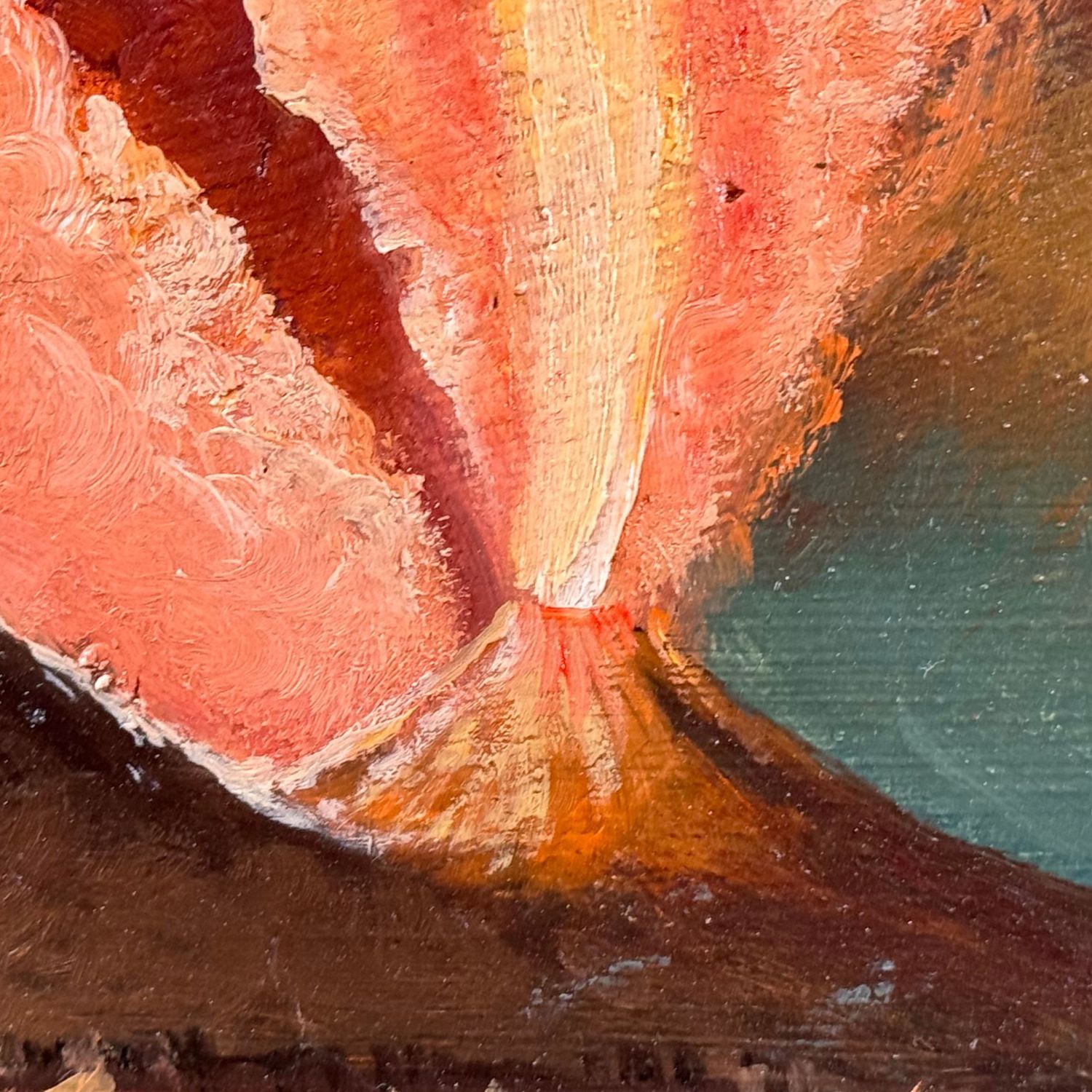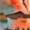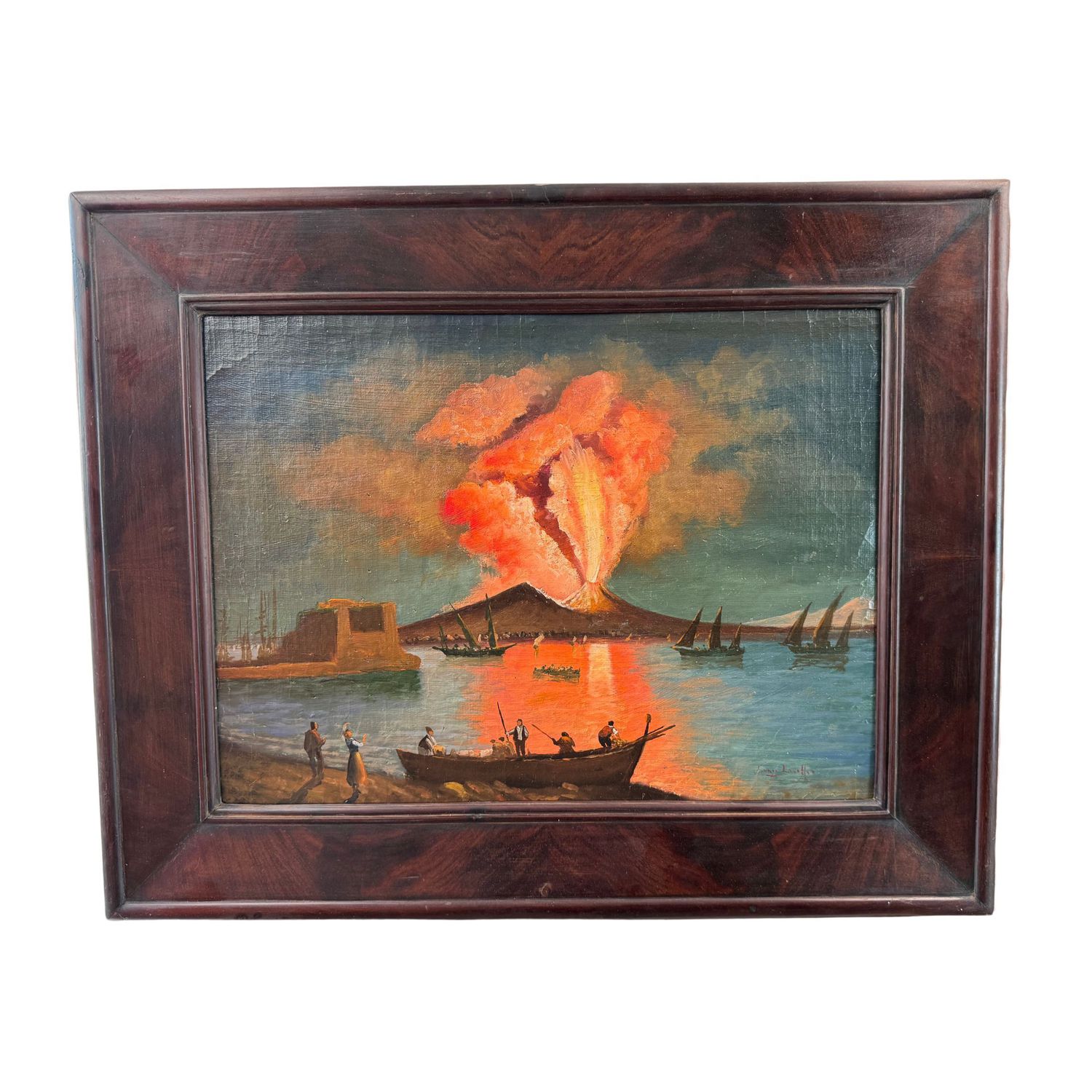 Dipinto olio su tela applicata su tavola, periodo XIX/XX secolo scuola Italiana, raffigurante Eruzione del Vesuvio.