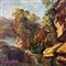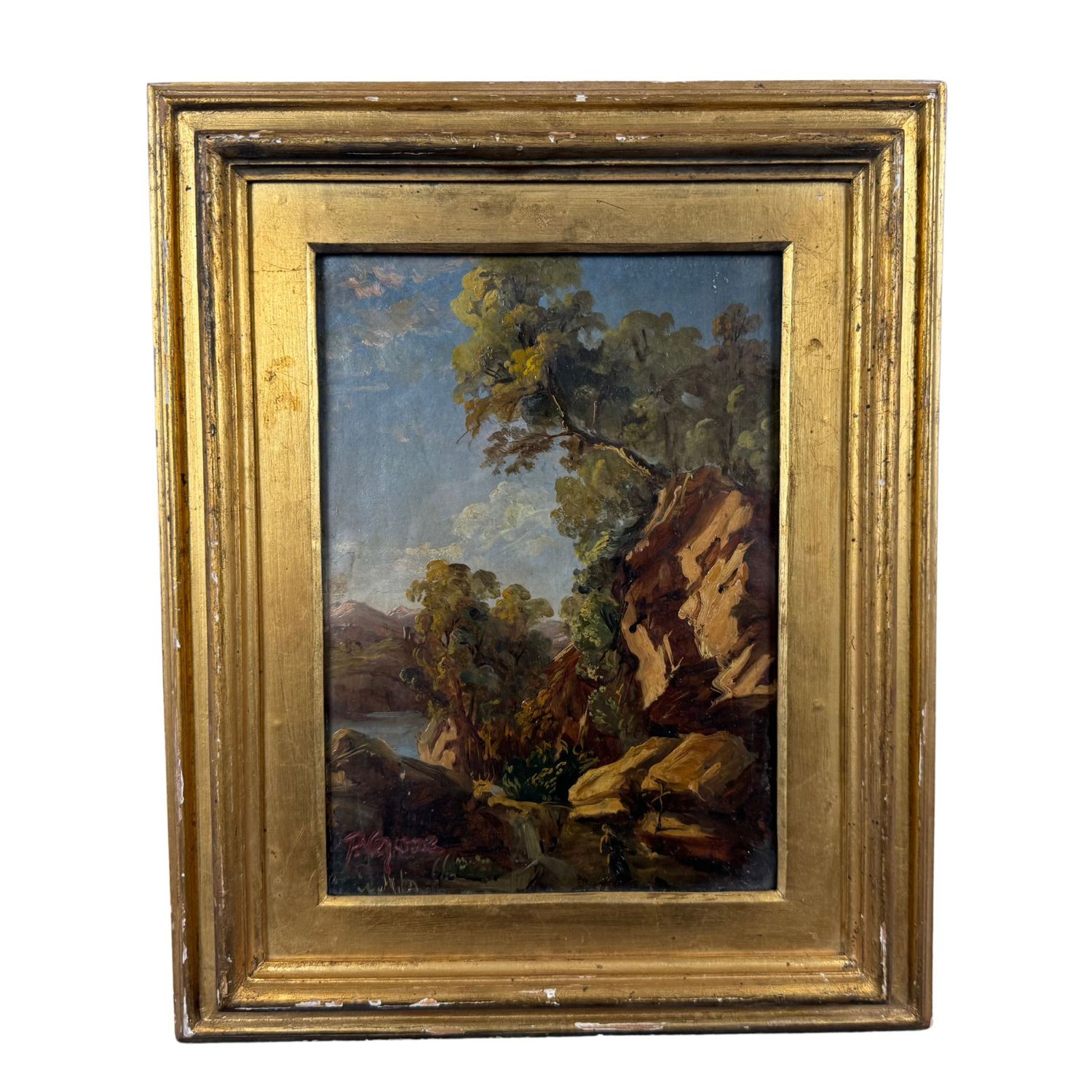 Dipinto olio su cartoncino, periodo XIX/XX secolo scuola Italiana, raffigurante Scorcio di paesaggio.