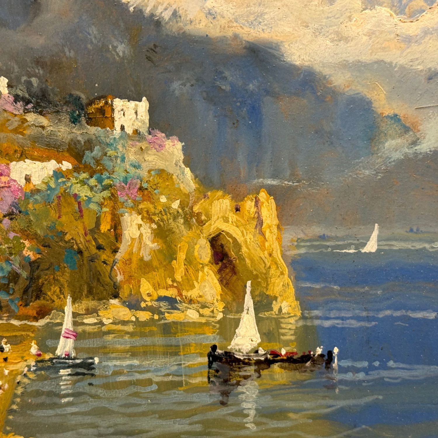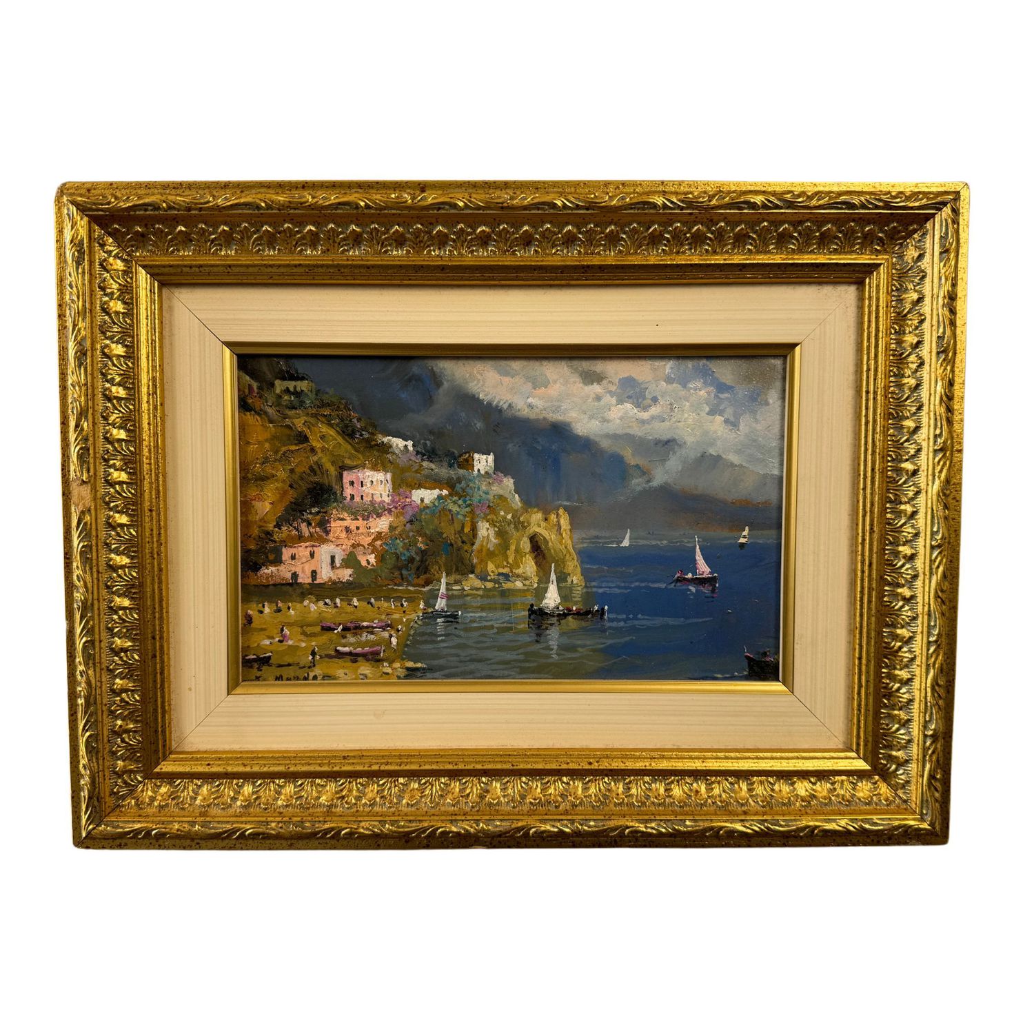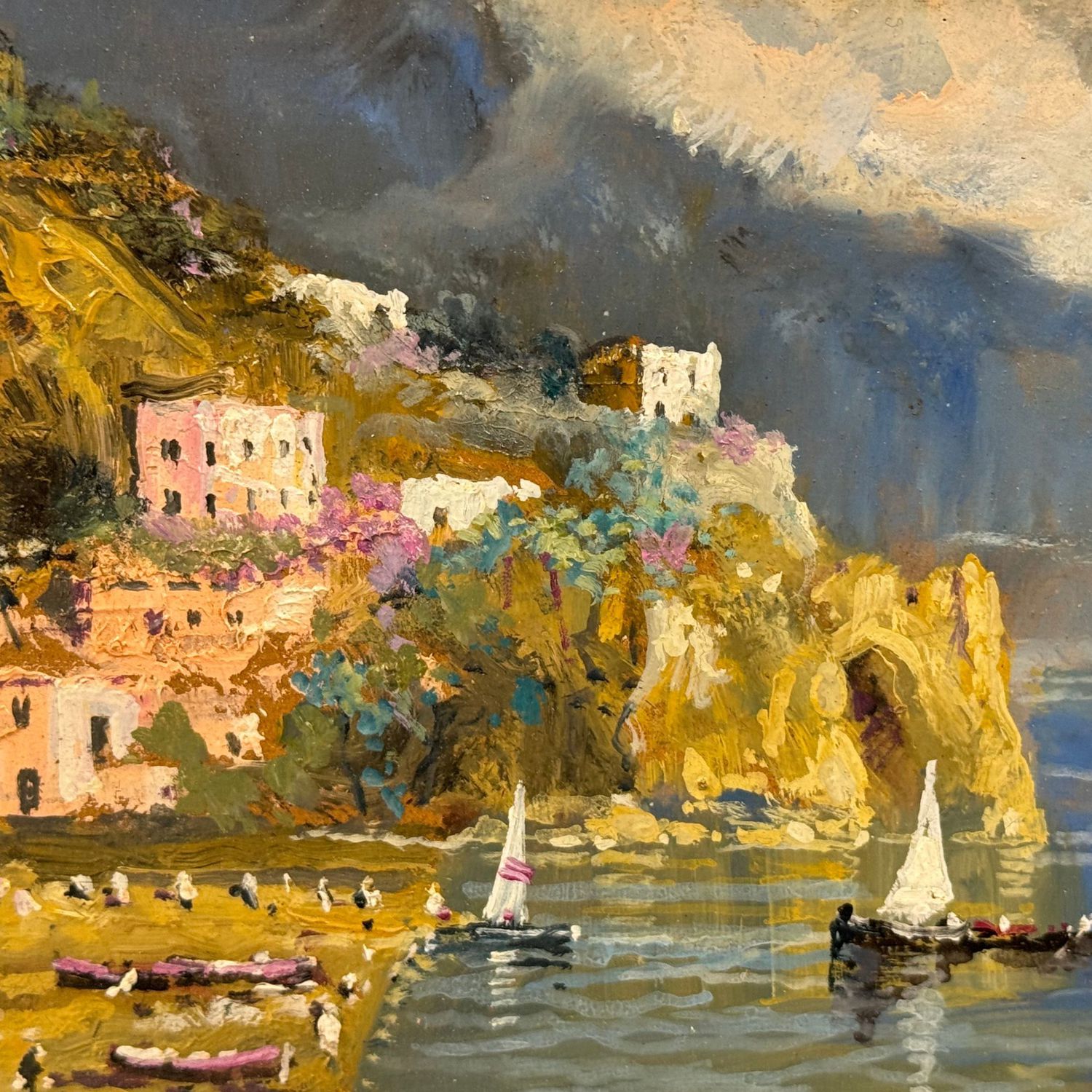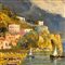 Dipinto olio su pannello, periodo XX secolo scuola Italiana, raffigurante Amalfi.
