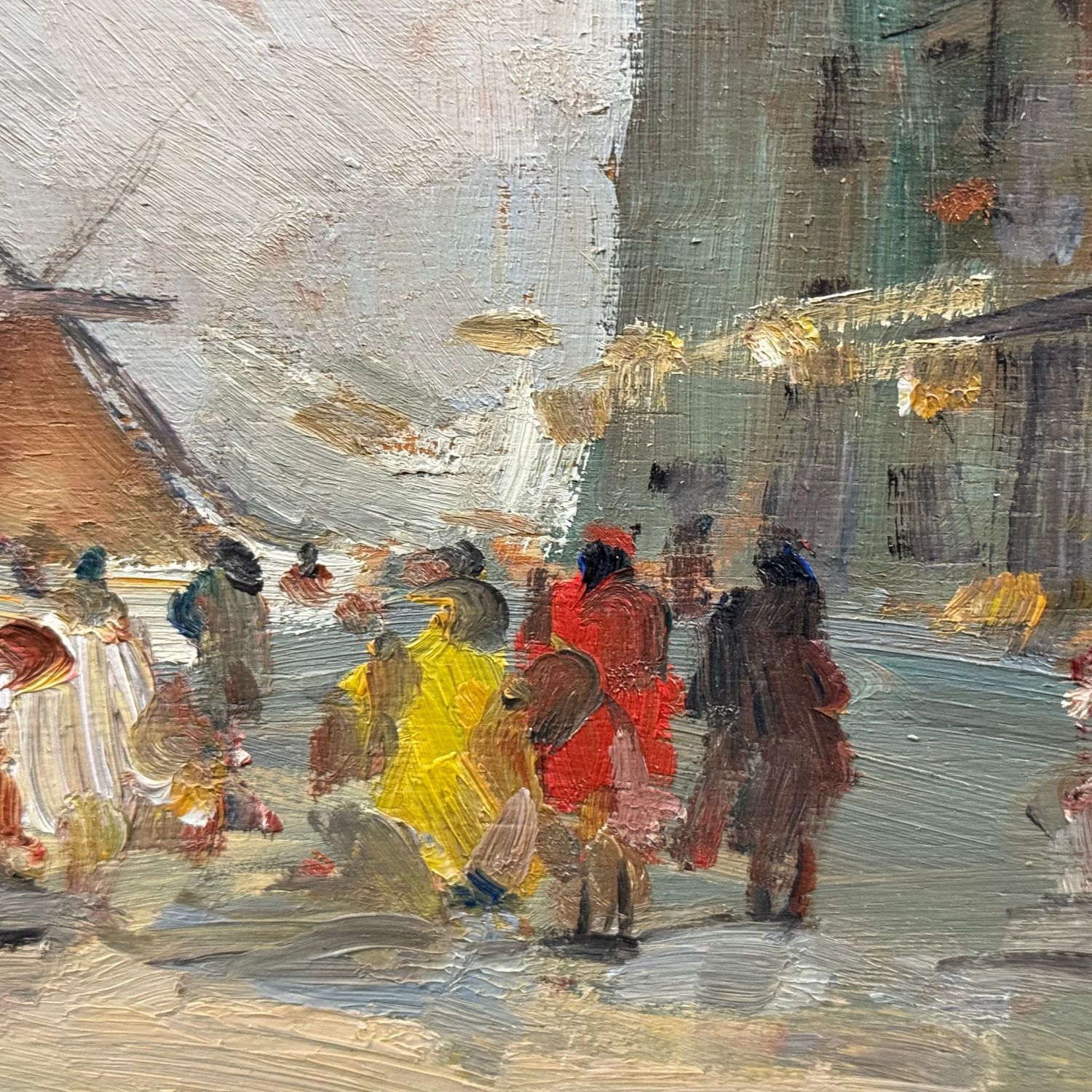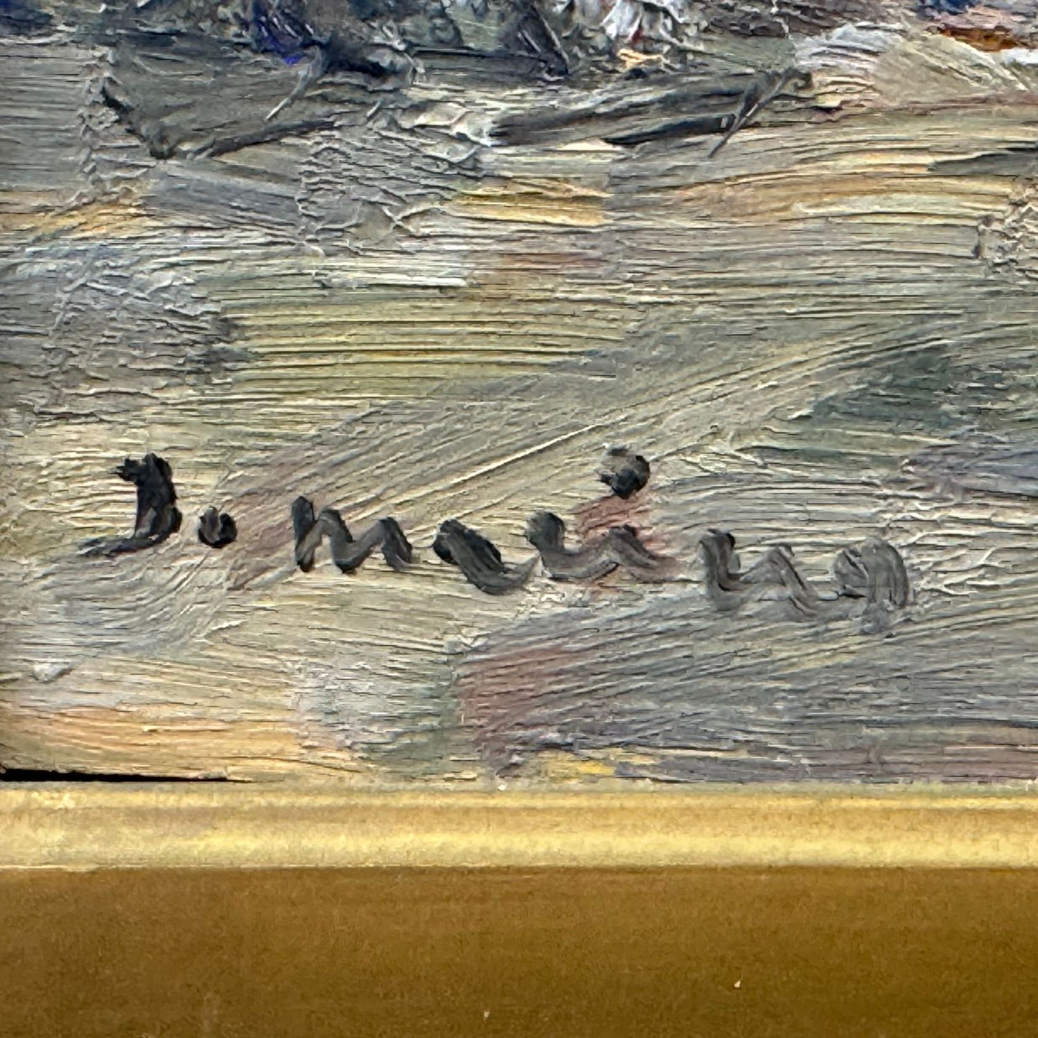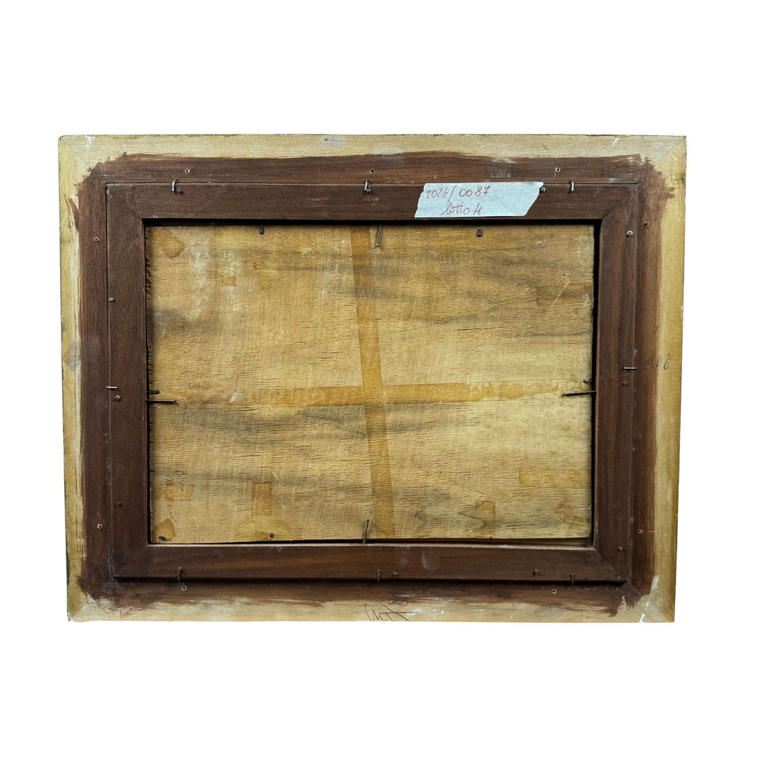 Dipinto olio su tavola, periodo XX secolo scuola Italiana, raffigurante Paesaggio con personaggi.