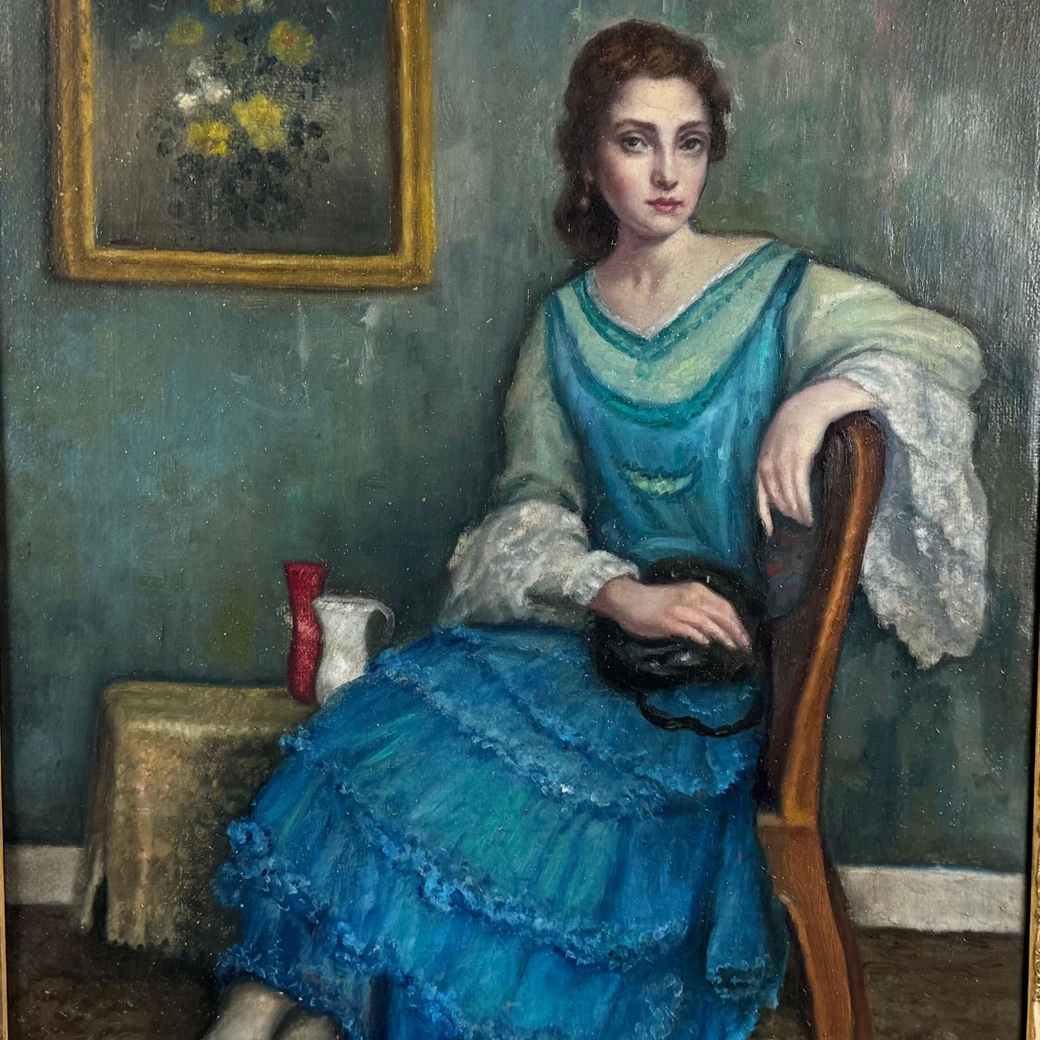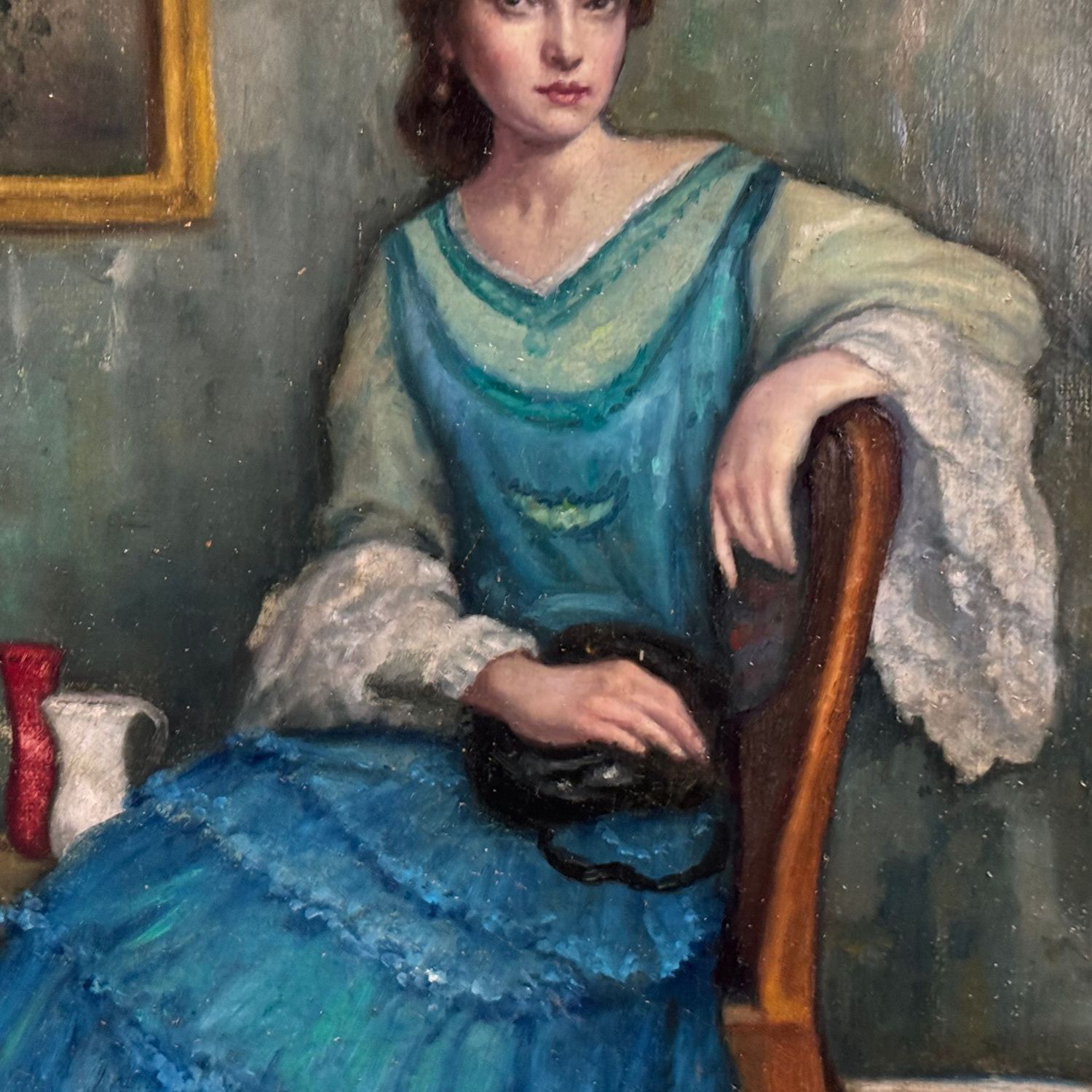 Dipinto olio su tela, periodo XX secolo scuola Italiana, raffigurante ritratto di donna seduta.