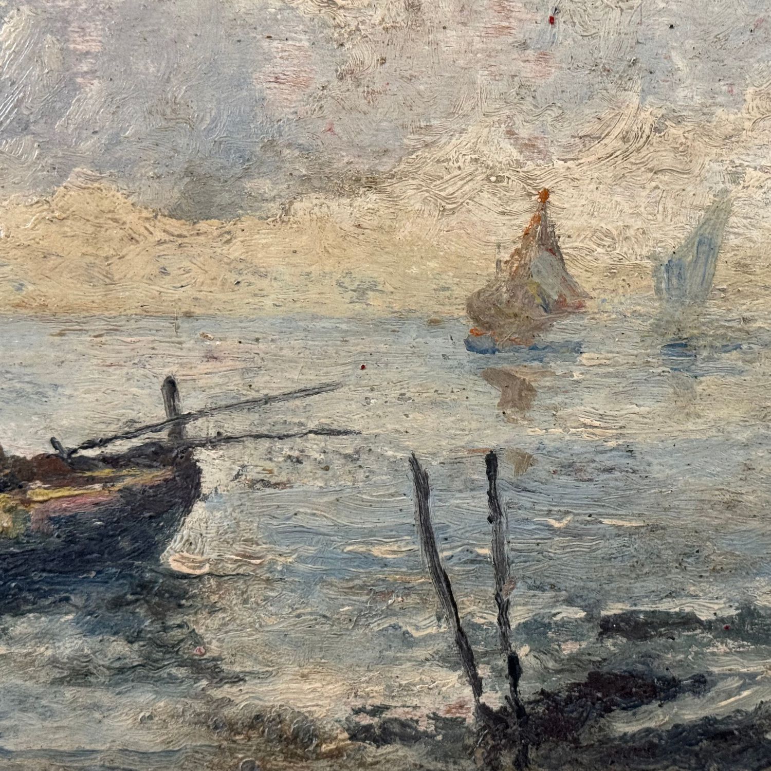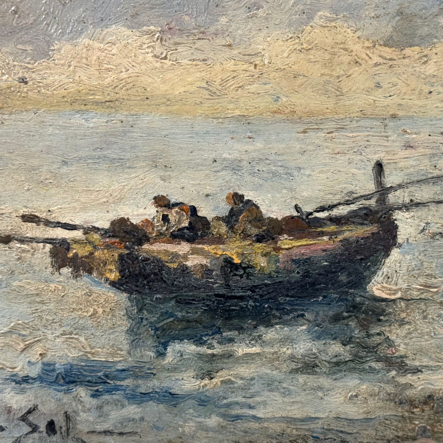 Dipinto olio su tavola, periodo XX secolo scuola Italiana, raffigurante Marina.