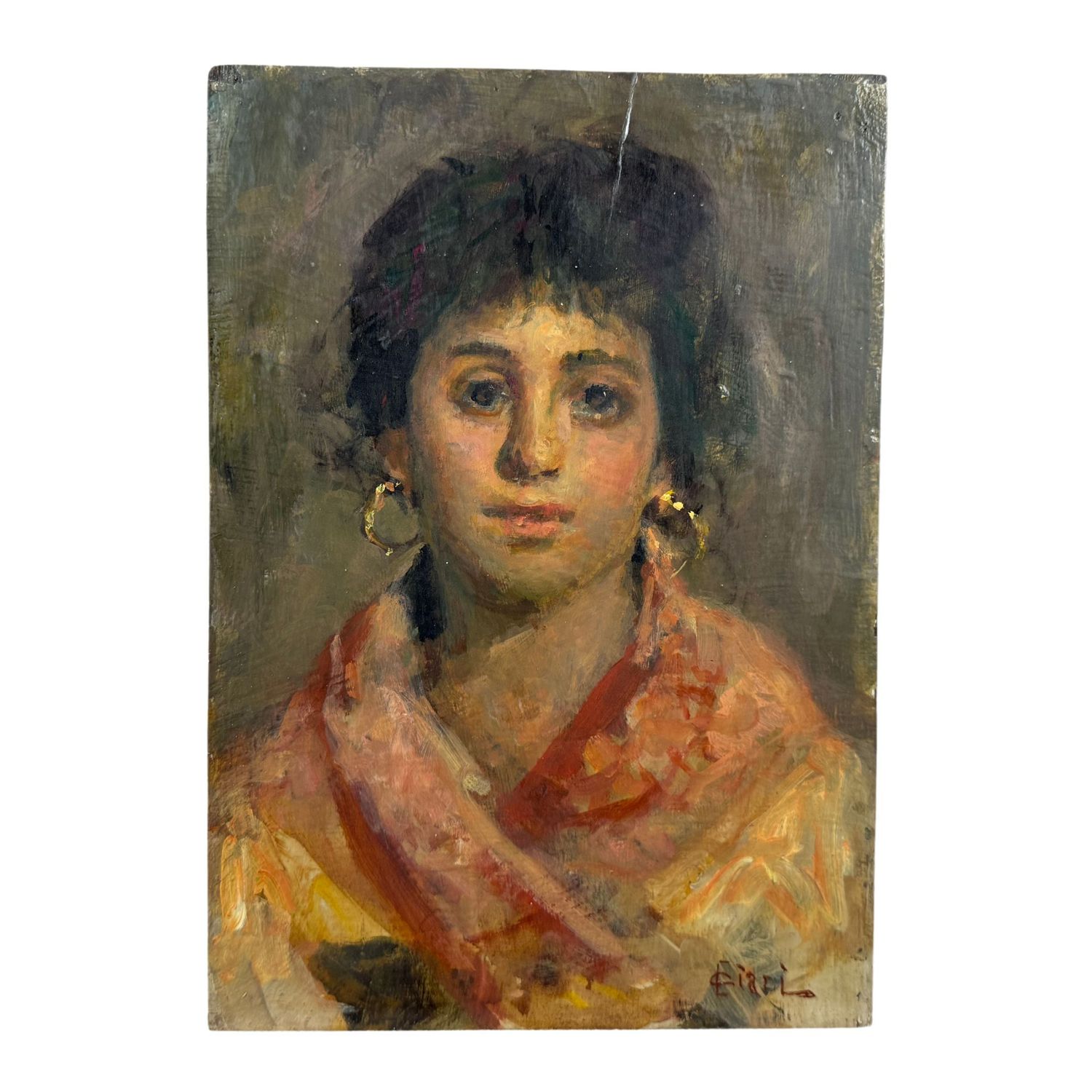 Dipinto olio su tavola, periodo XX secolo scuola Italiana, raffigurante Ritratto di donna.