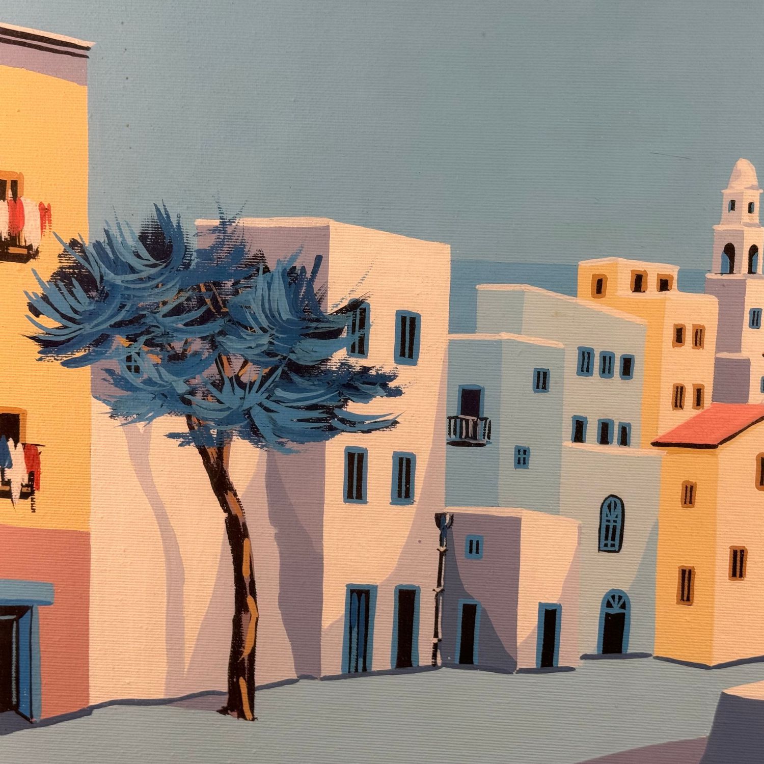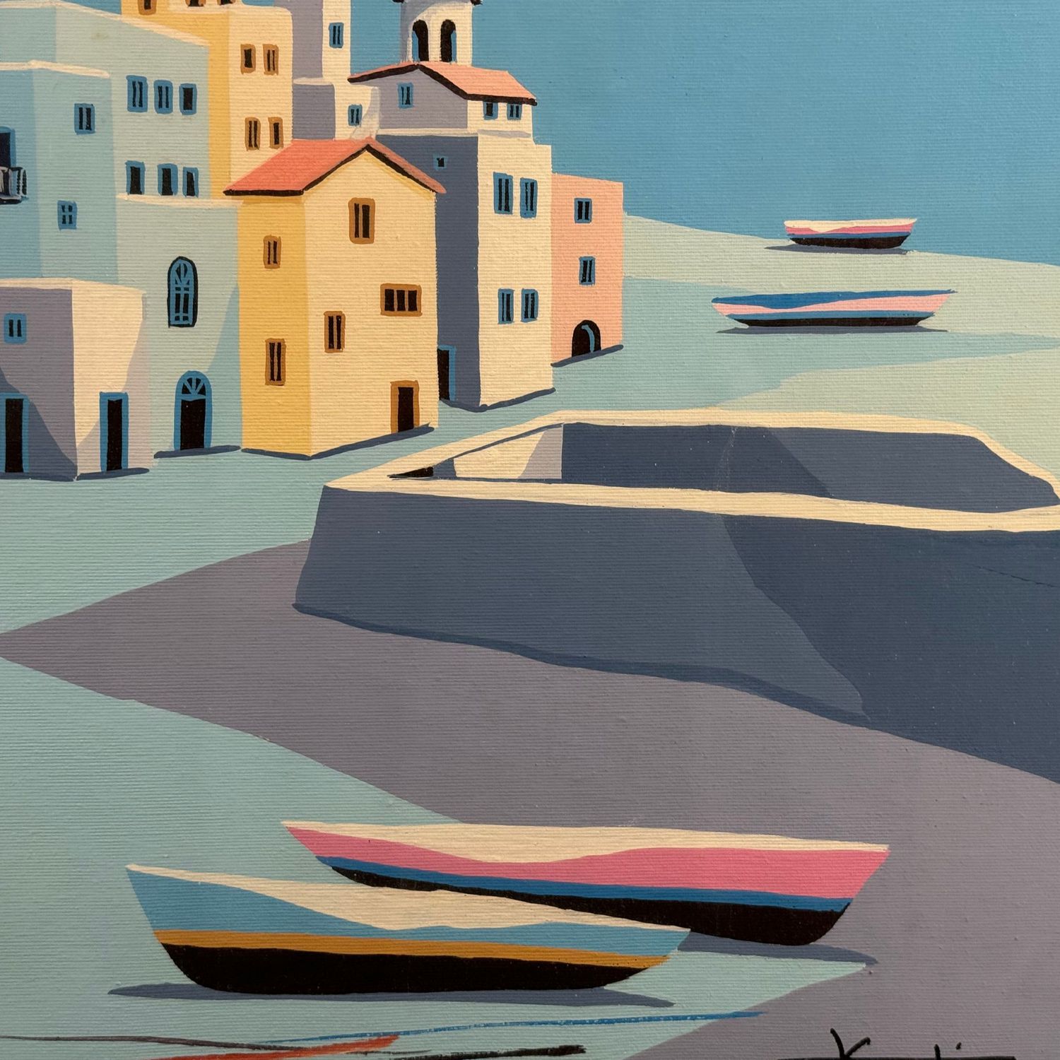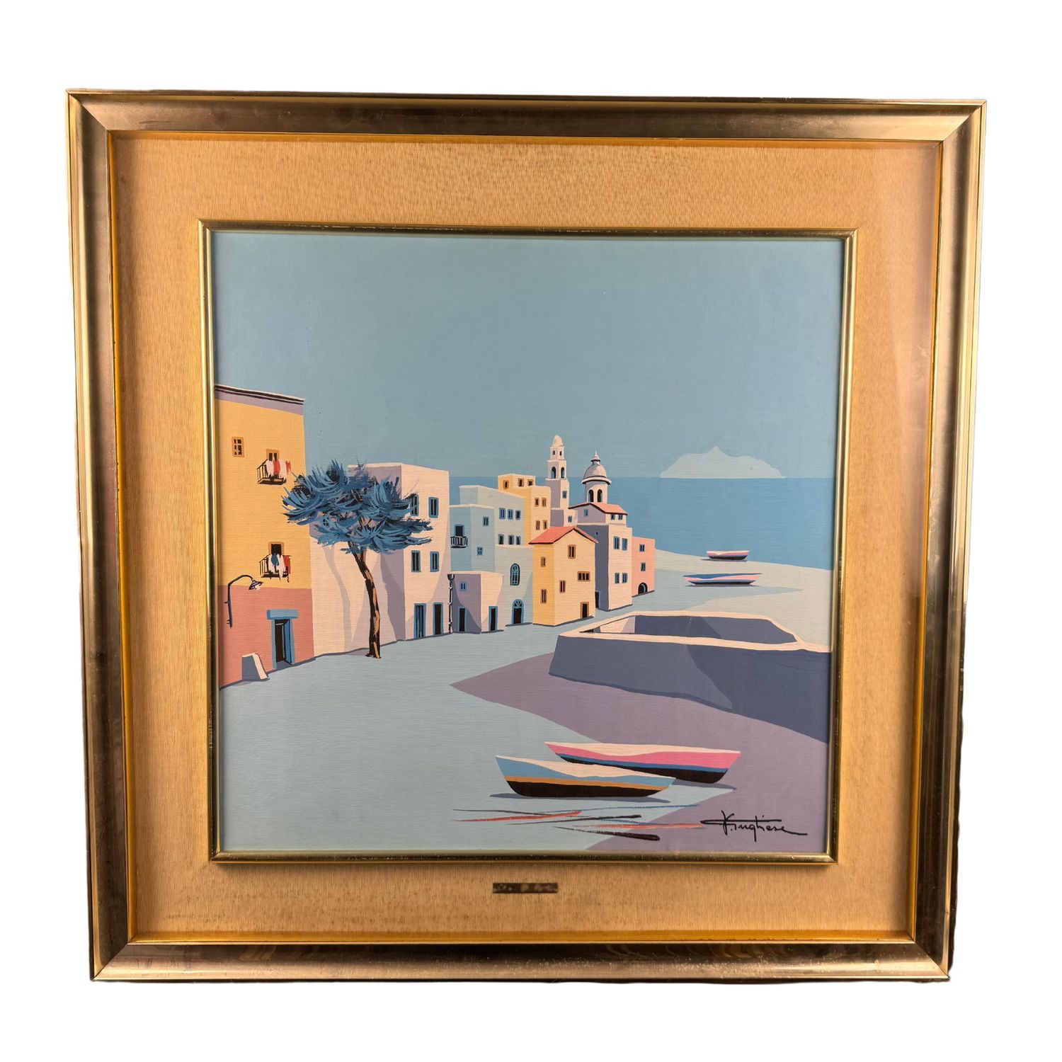 Dipinto olio su tela, periodo XX secolo scuola Italiana, raffigurante Case mediterranee.