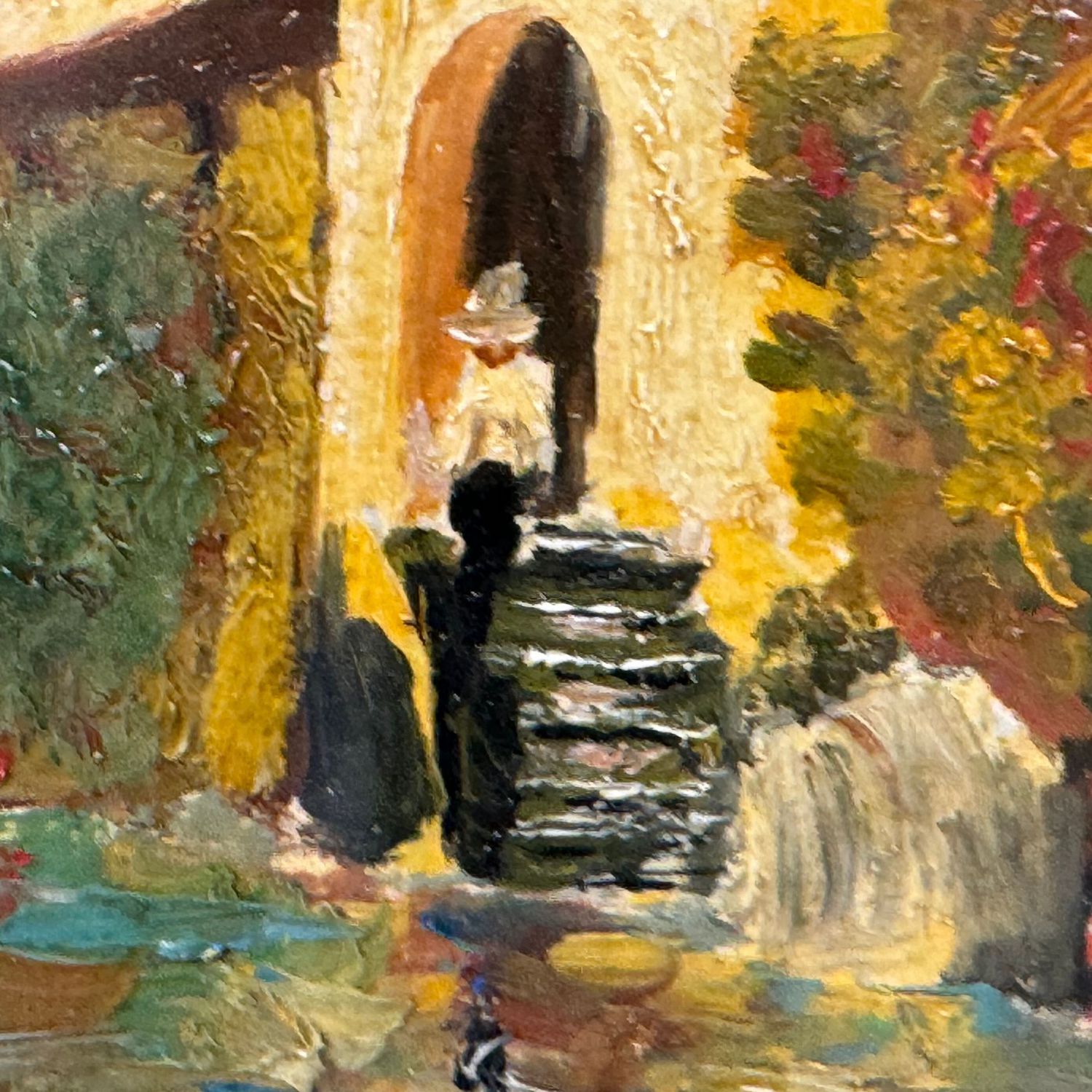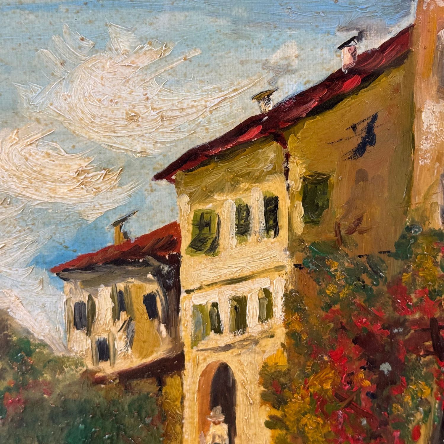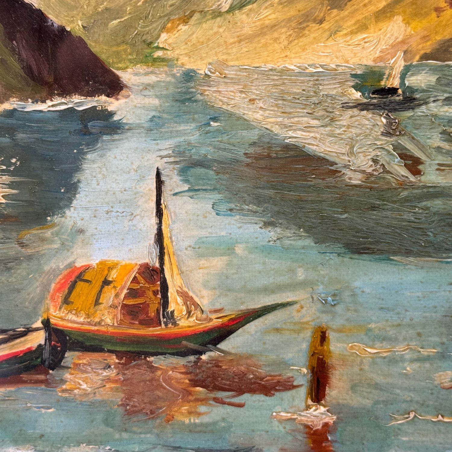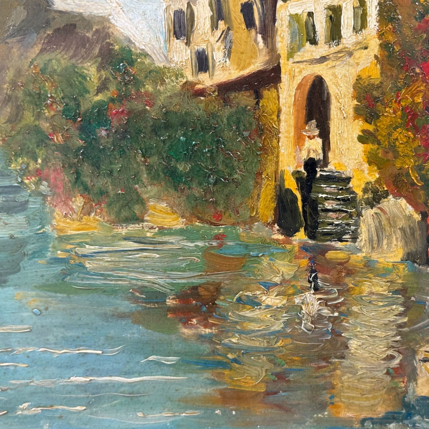 Dipinto olio su tavola, periodo XX secolo scuola Italiana, raffigurante Paesaggio fluviale (Luogo imprecisato).