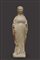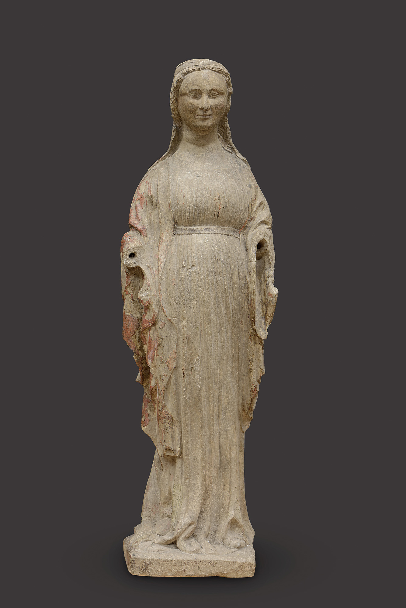 Elegantissima nelle movenze del panneggio che ricade in fitte piegoline fino a terra trattenute da una cinta alla vita come una kore greca la Vergine Annunciata indossa anche un mantello che le scende morbidamente dalle spalle. Il bel volto ovale dai lineamenti perfetti e regolari è incorniciato da ciocche ondulate che ne accentuano l'espressione solenne.