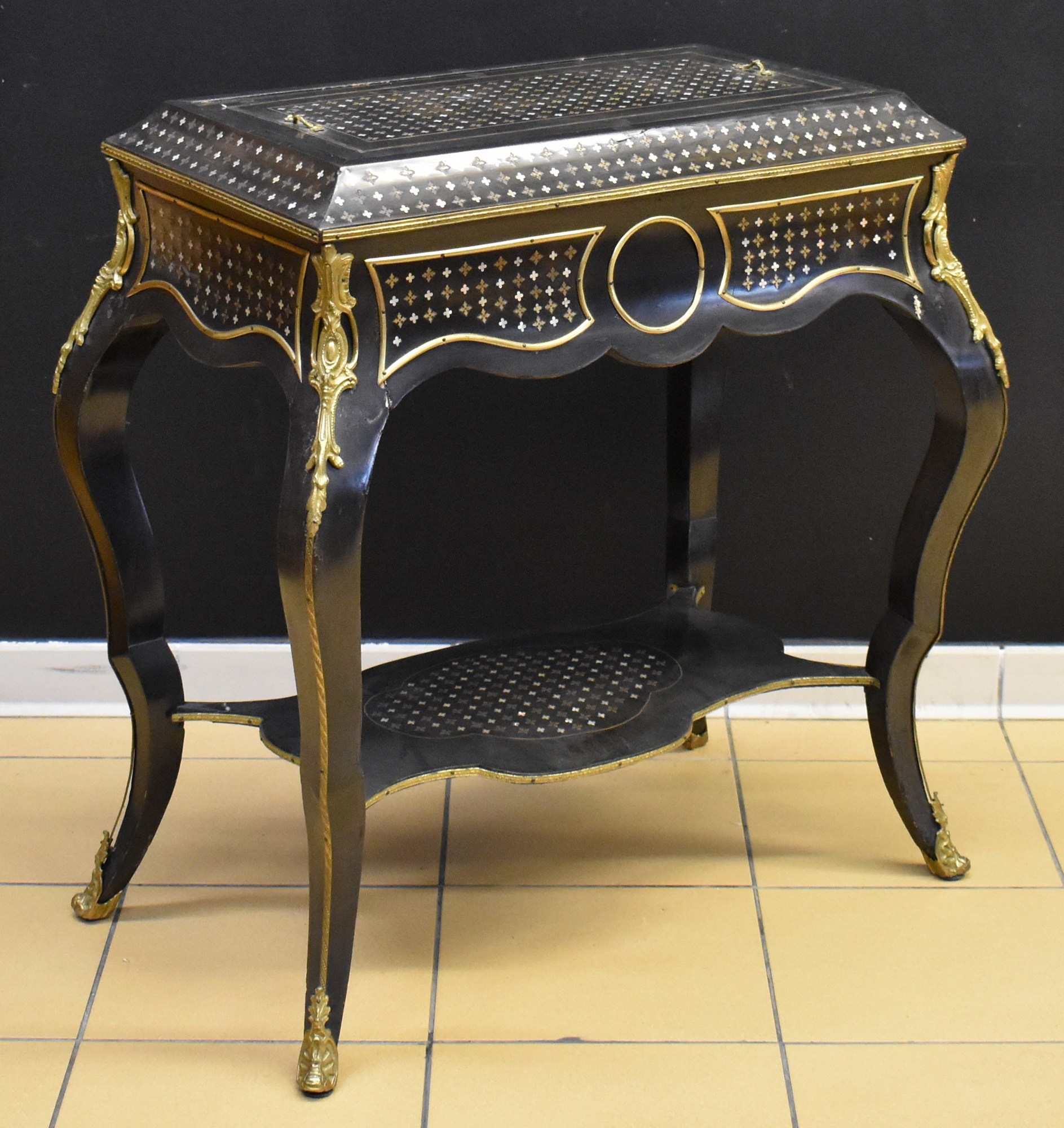 Tavolino intarsiato in ottone e madreperla epoca Napoleone III sec.XIX