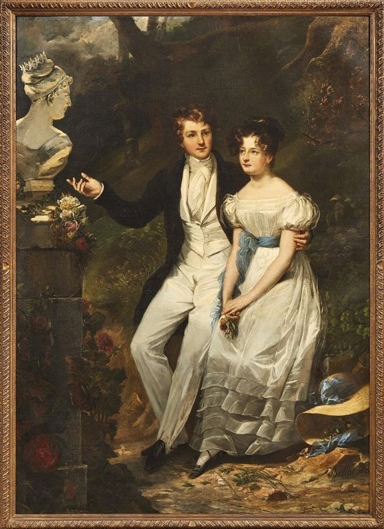 Jean Hilarie Belloc (1786-1866) 'Coppia di giovani' olio su tela firmato in basso a destra e datato 1825