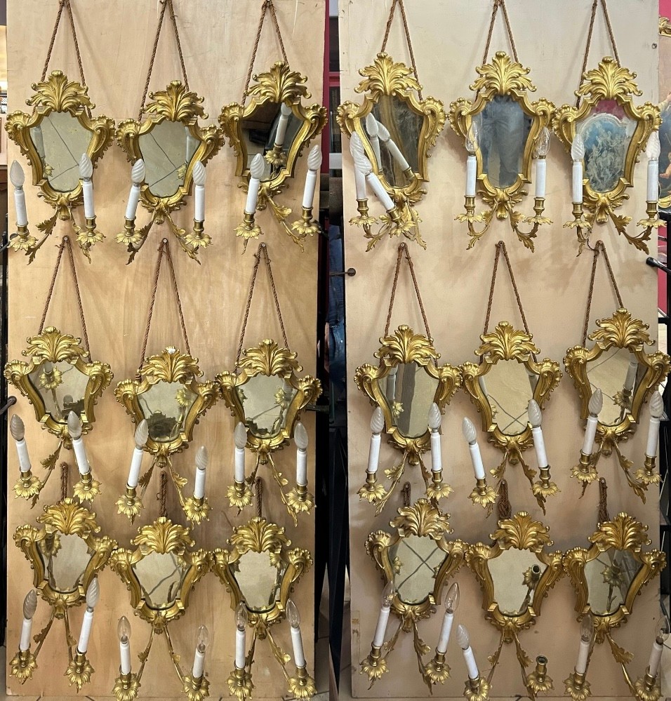 Set n.18 appliques a due luci in bronzo dorato sec.XX