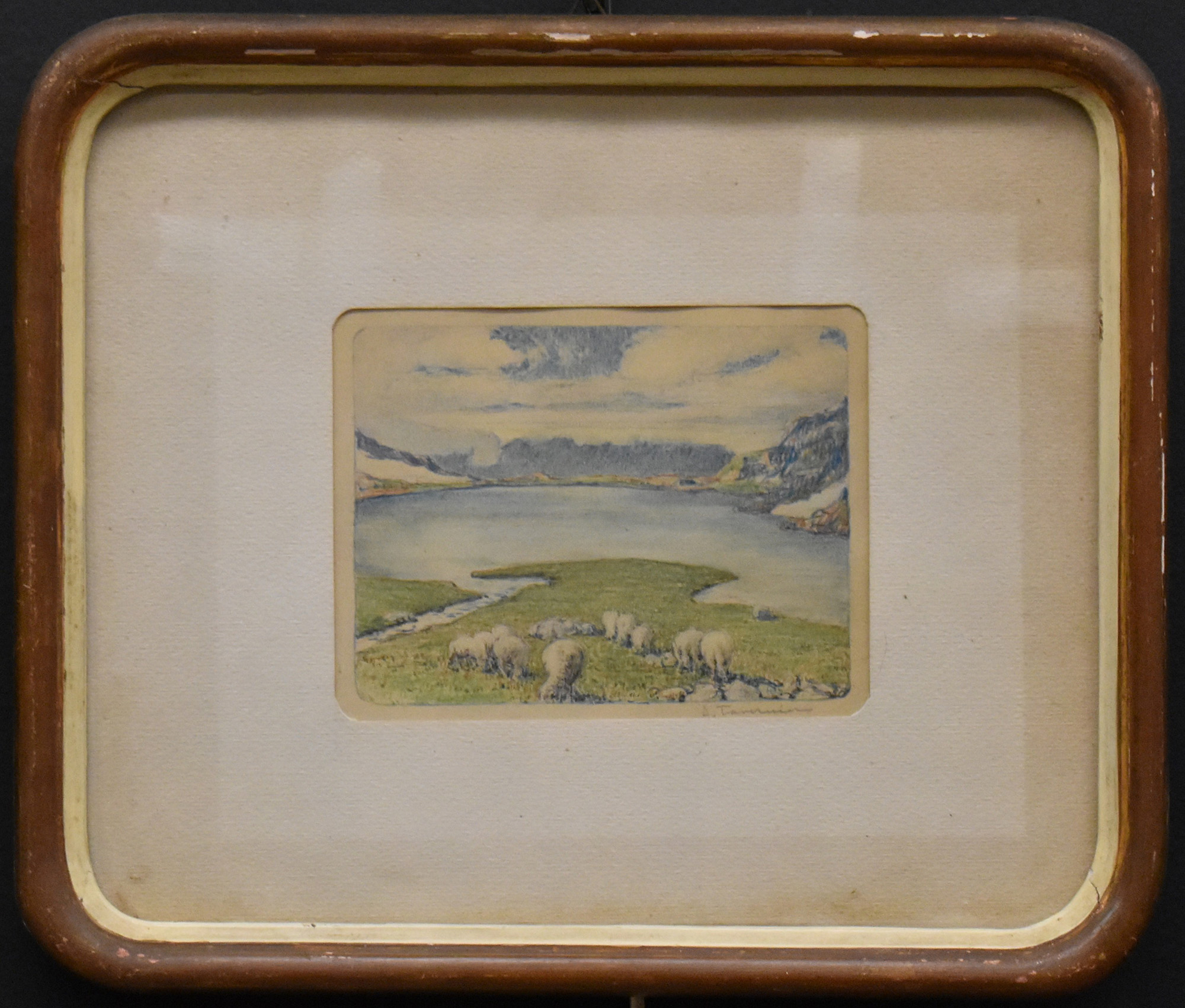 Andrea Tavernier (1858-1932) 'Lago montano' pastello su carta firmato in basso a destra
