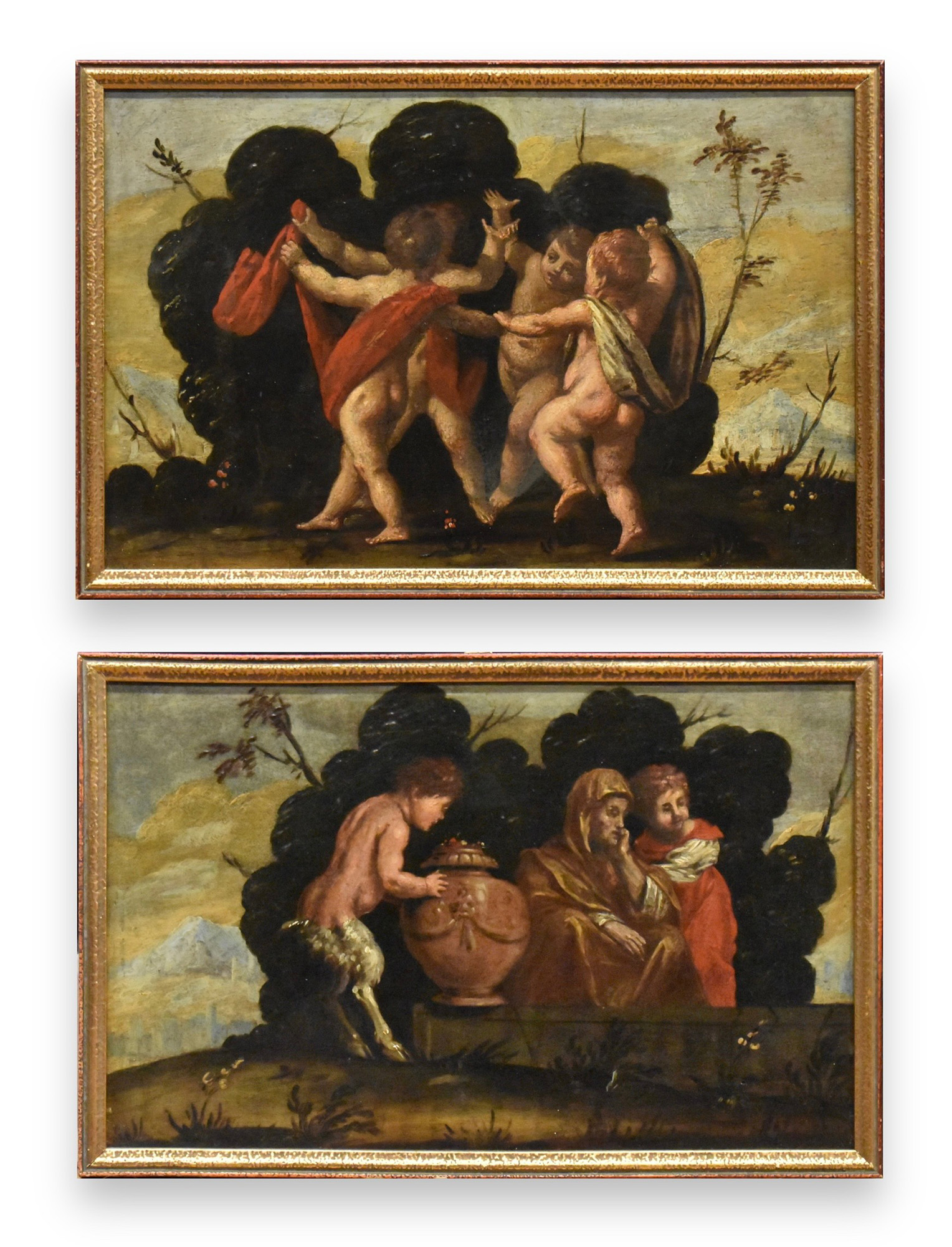 'Scena mitologica' coppia di oli su tavola Veneto sec.XVII