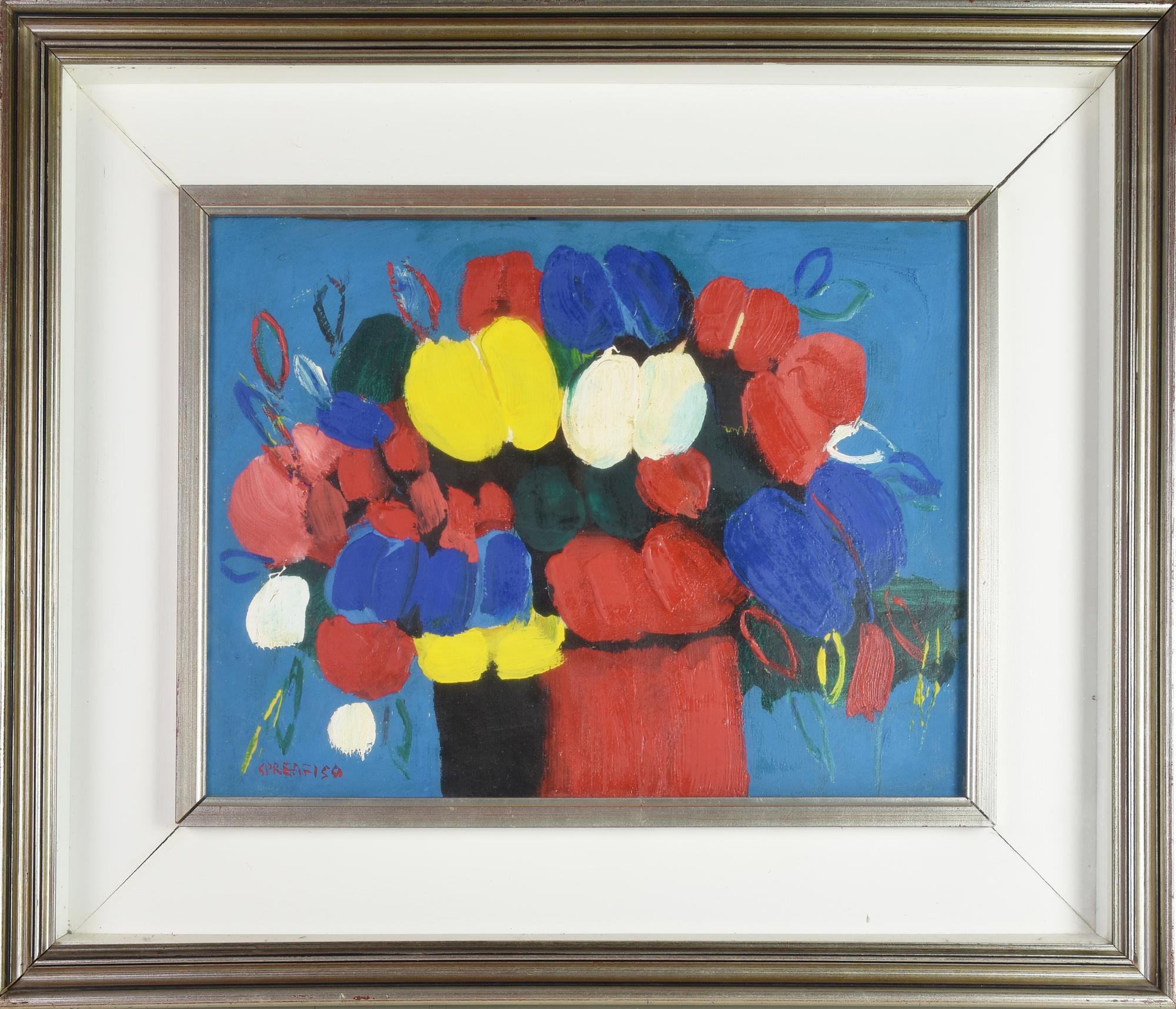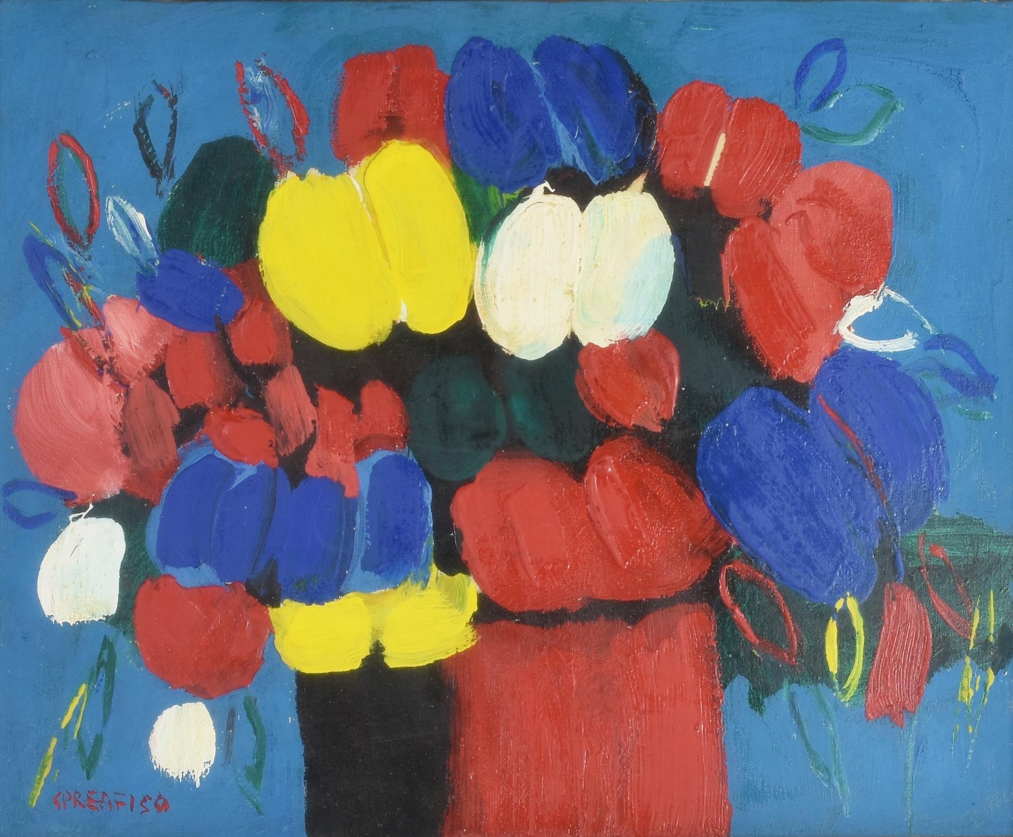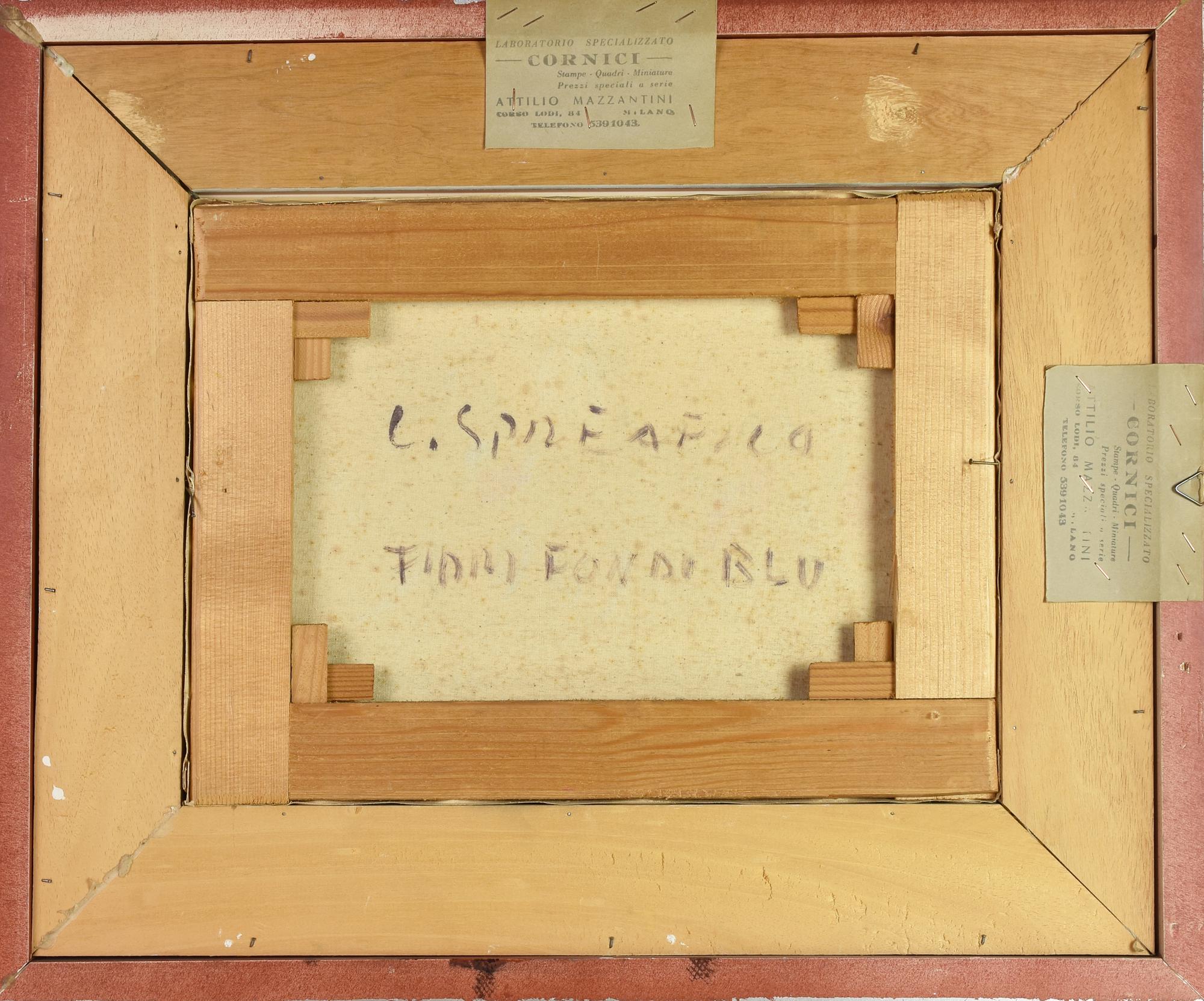 Leonardo Spreafico FIORI FONDO BLU olio su tela, cm 30x40 firma sul retro:...