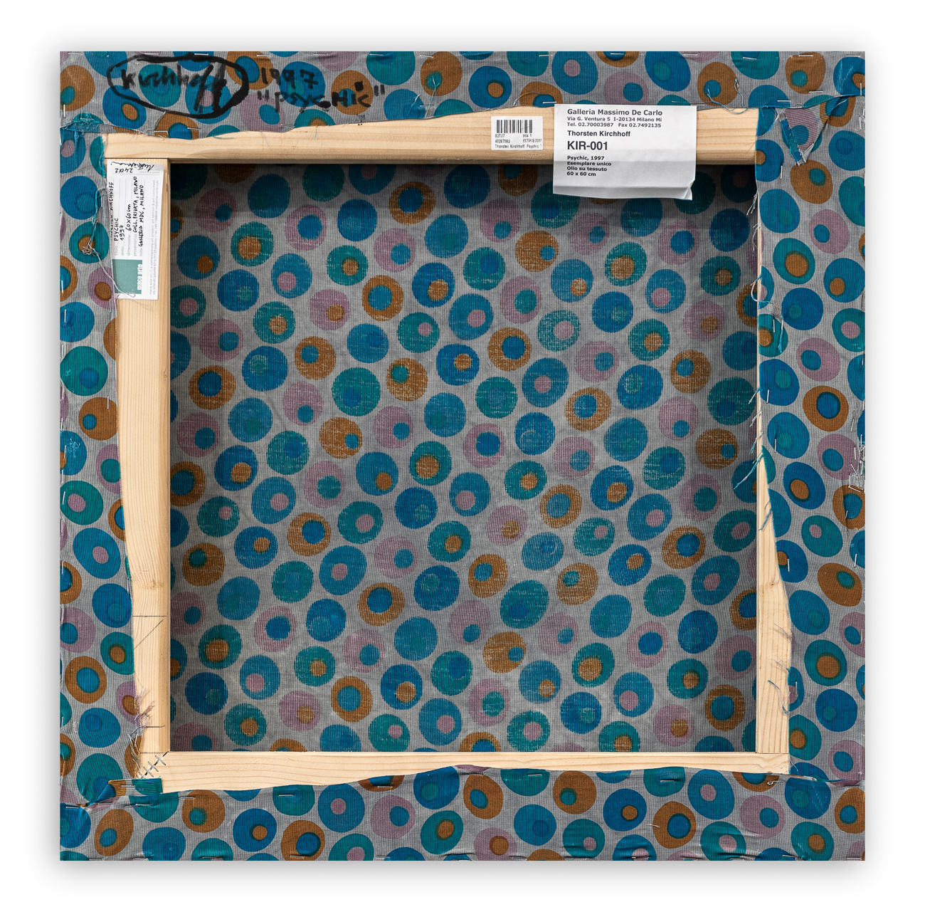 Etichetta della Galleria Massimo De Carlo (MI) con caratteristiche tecniche dell'opera al retro