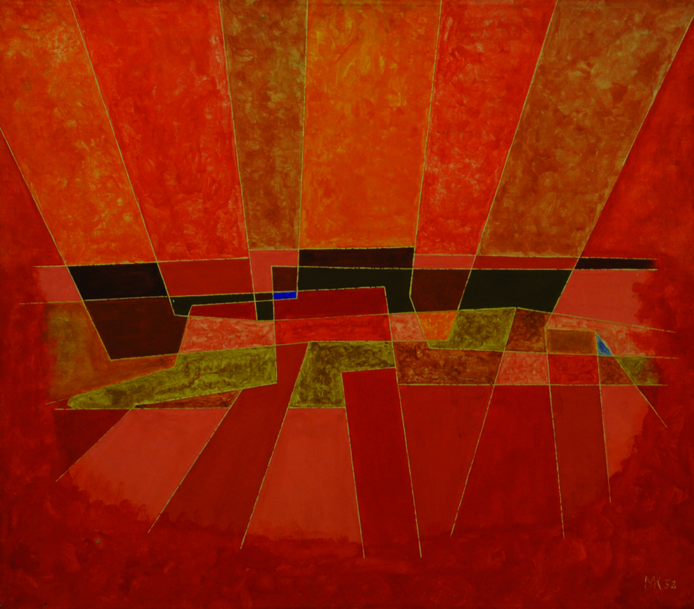 Firmato, datato. MARTIN KRAMPEN (1928) - " Tramonto ", 1952, Olio su tela, cm. 65 x 75, Firmato e datato in basso a destra. Etichetta Studio d'Arte Beniamino sul retro. Prov. Collezione Privata