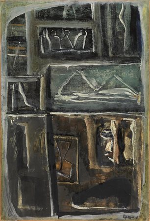 Mario Sironi(Sassari 1885 - Milano 1961)COMPOSIZIONE olio e tempera su carta...