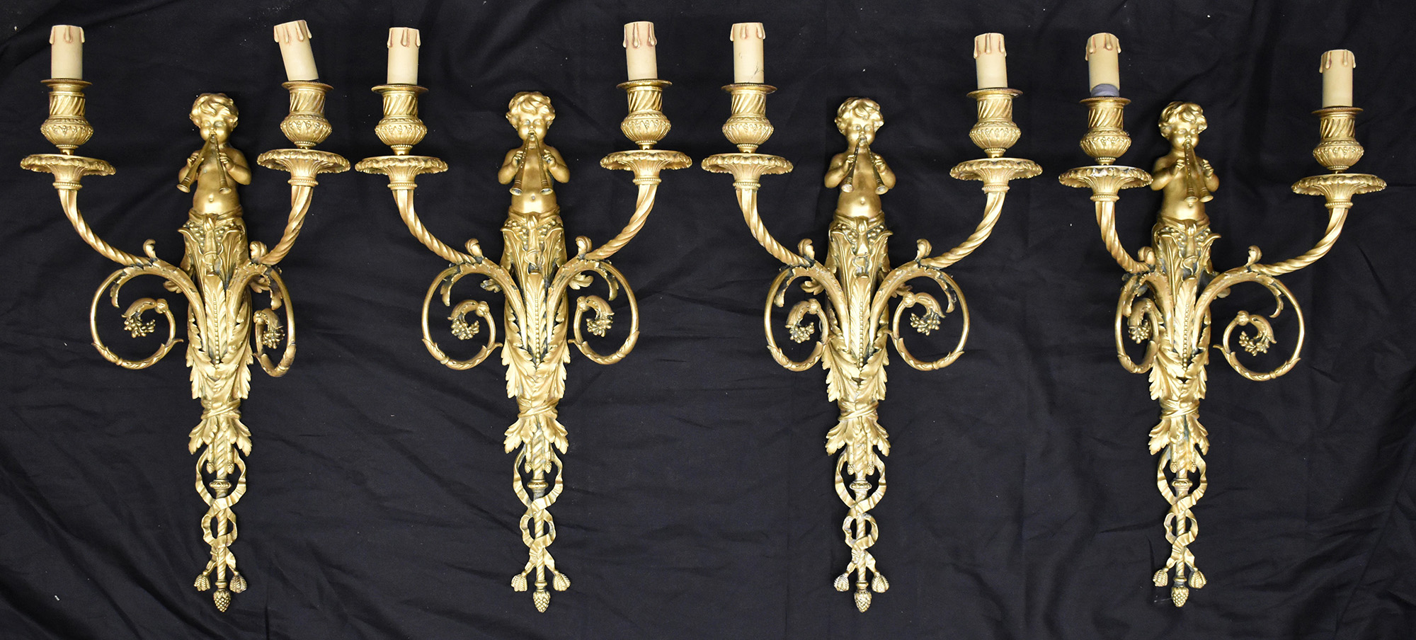 N.4 appliques in bronzo finemente dorato e cesellato Francia sec.XIX