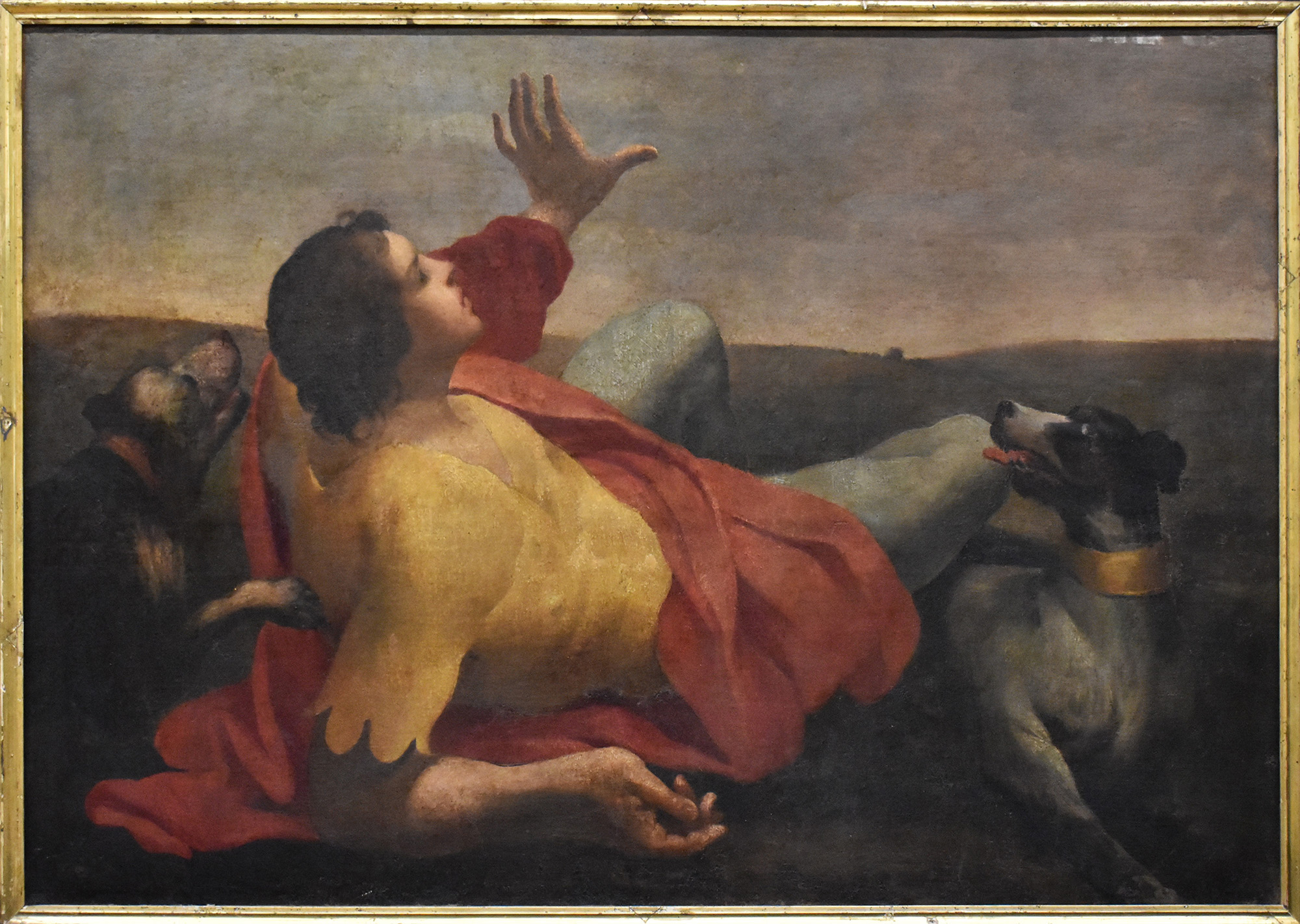 'Figura maschile con 2 cani' olio su tela sec.XVIII